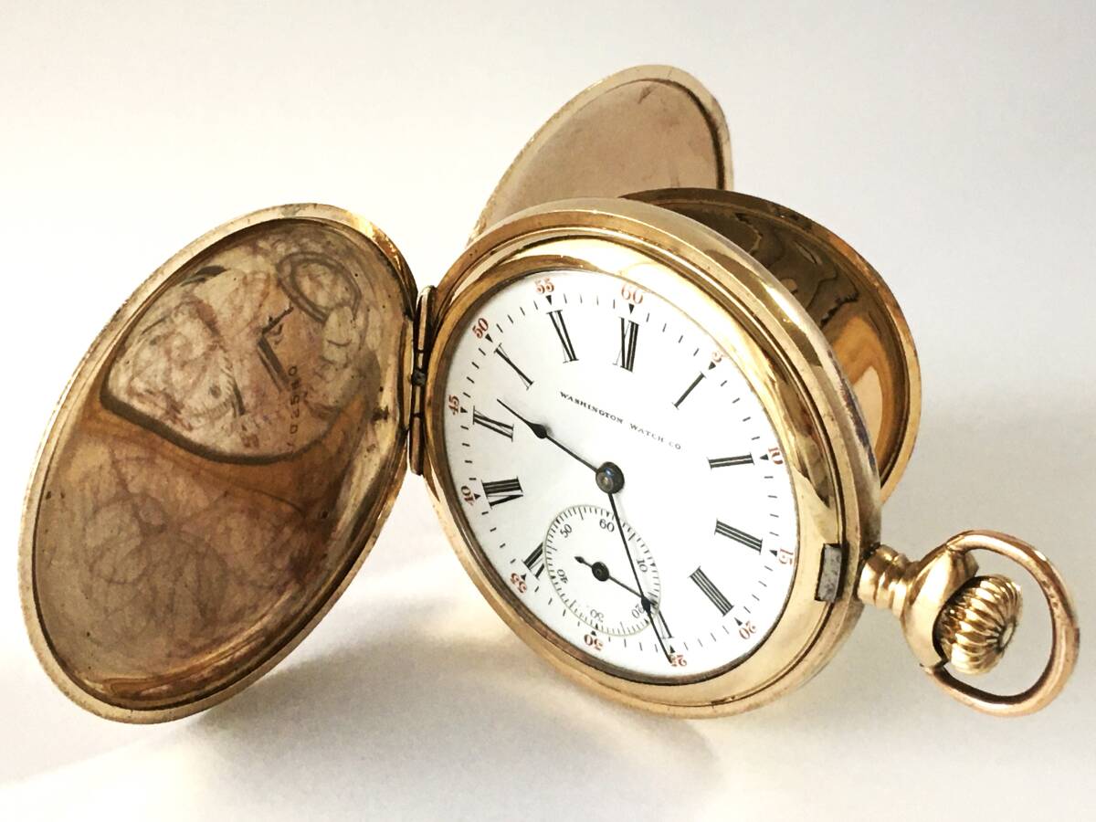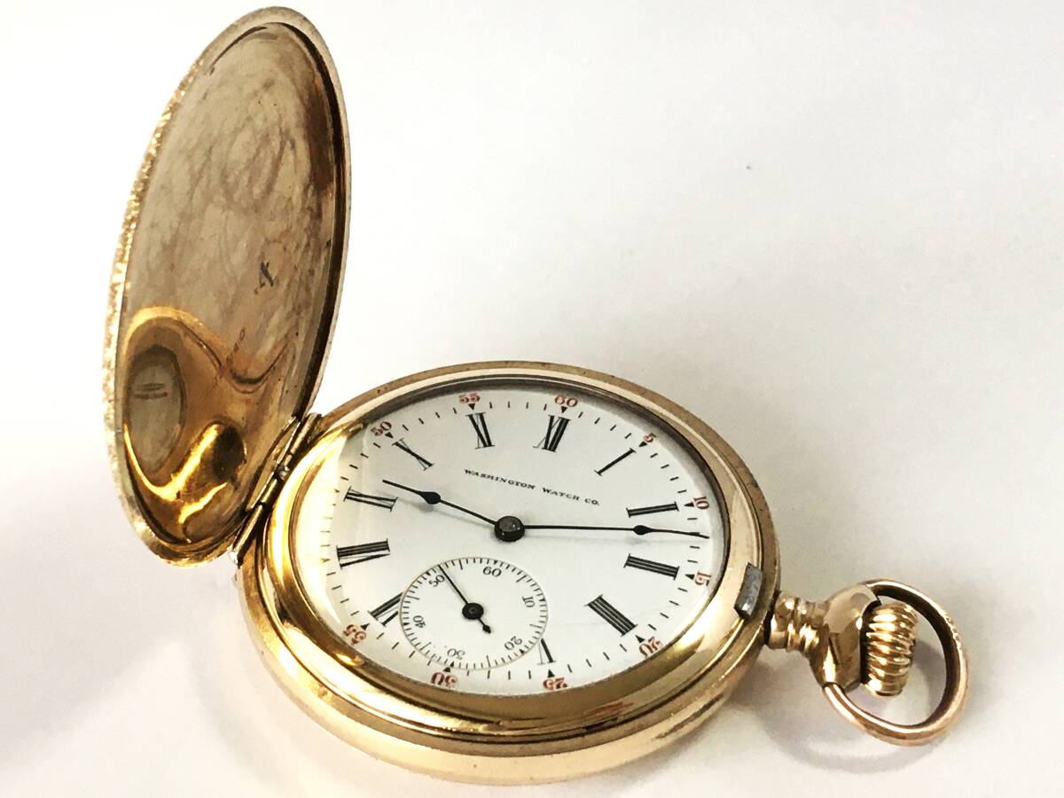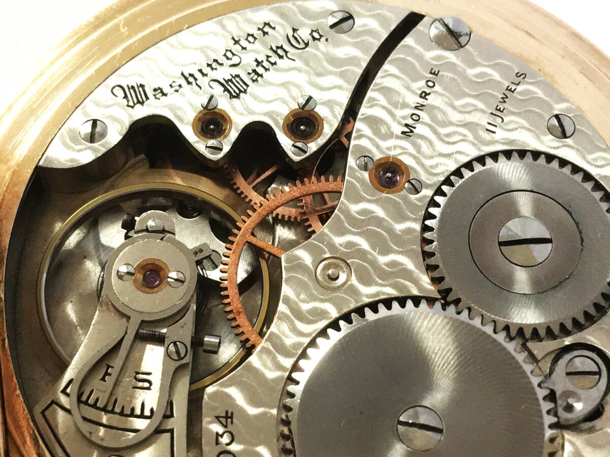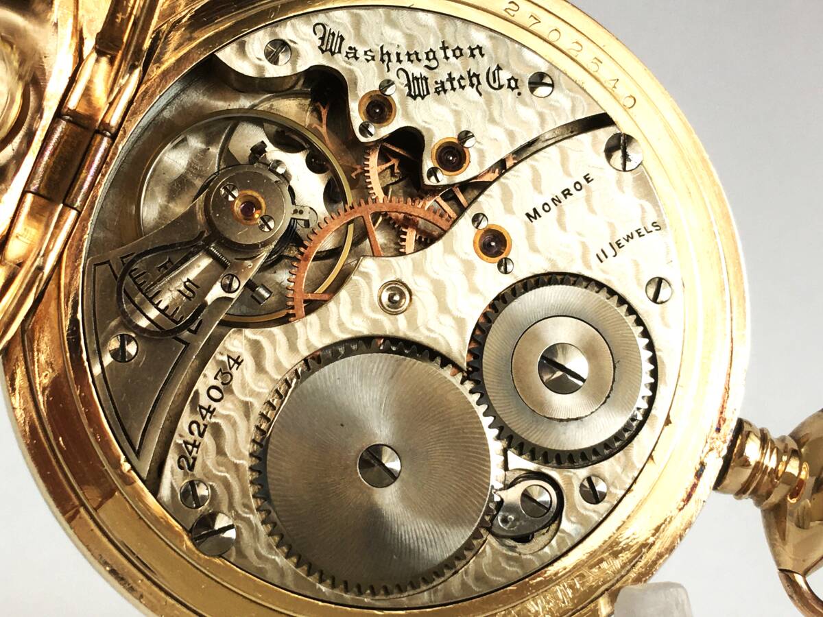 文字盤はポーセリン製ローマ数字表記の、WASHINGTON WATCH CO.銘。