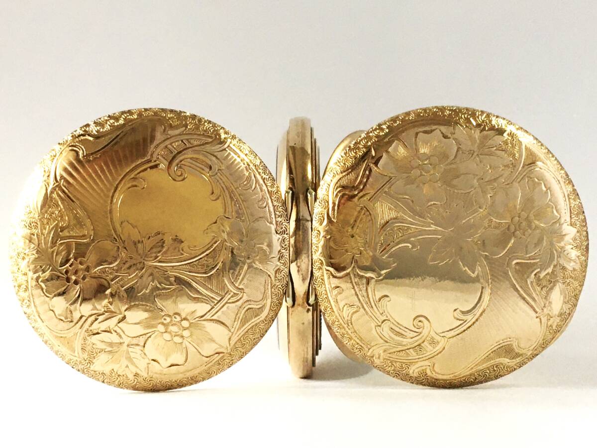 綺麗な模様が彫られた6サイズのケースは、ILLINOIS WATCH CASE CO.製。