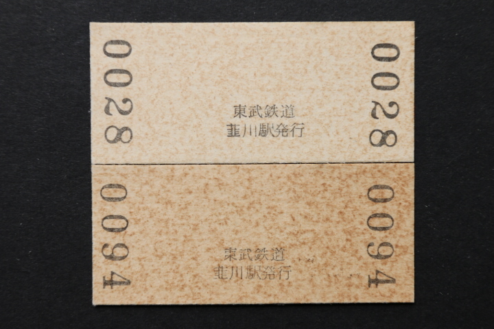 東武鉄道地紋入り入場券 韮川駅 大人券小児券2枚セット 110