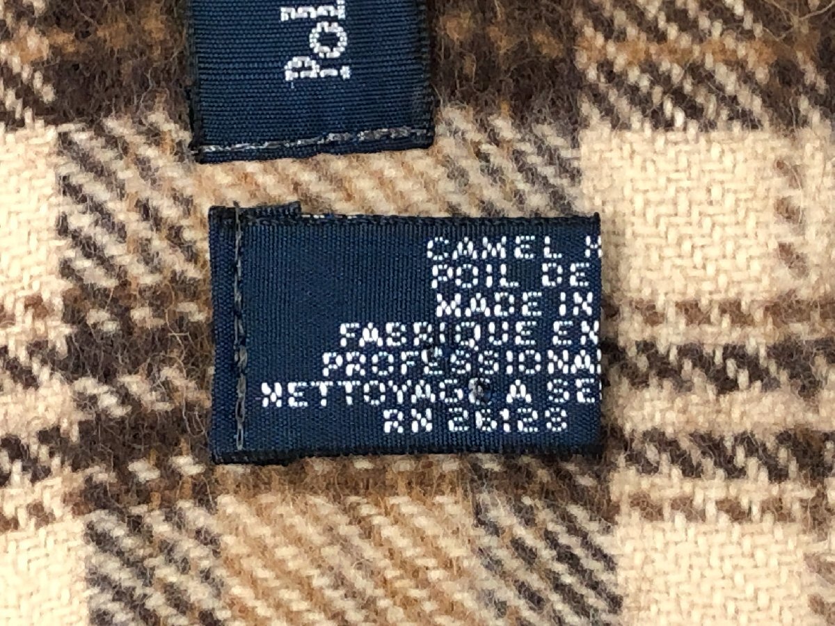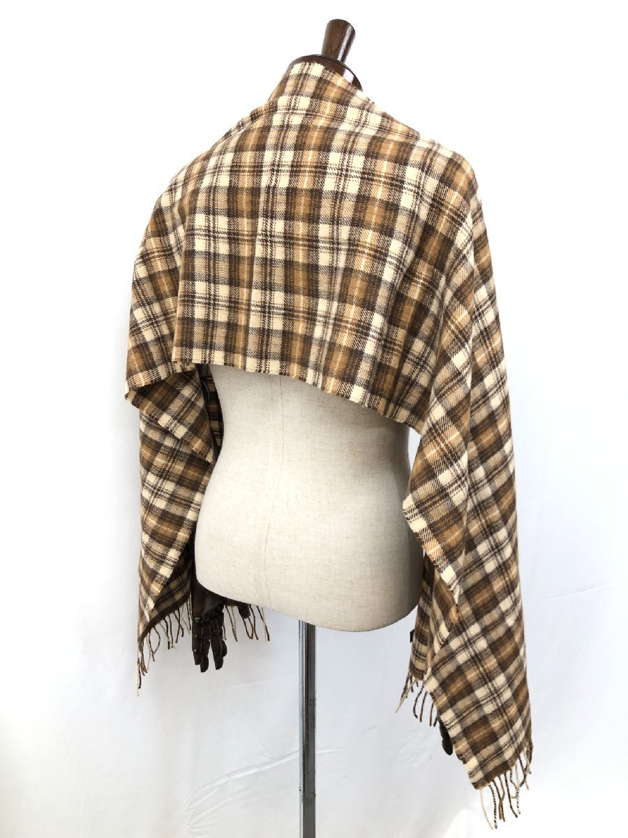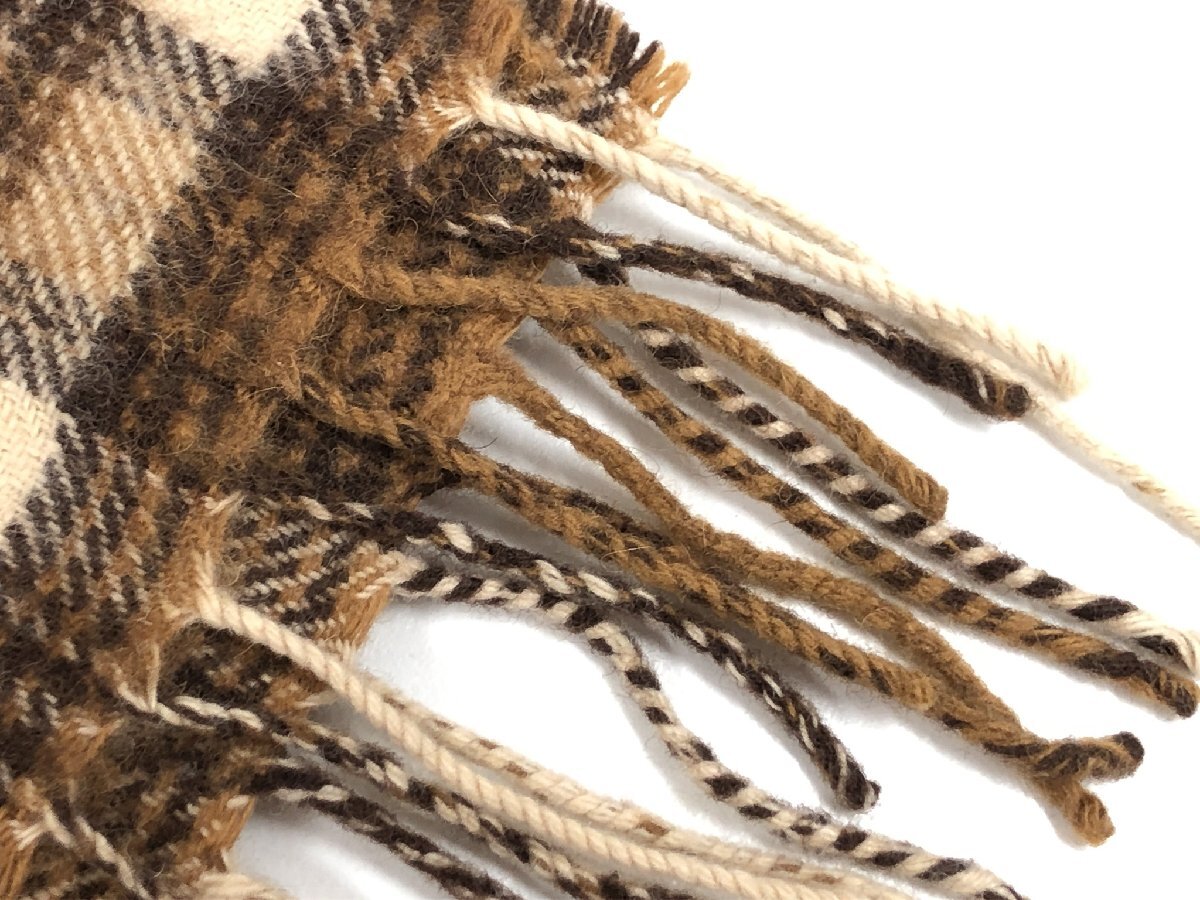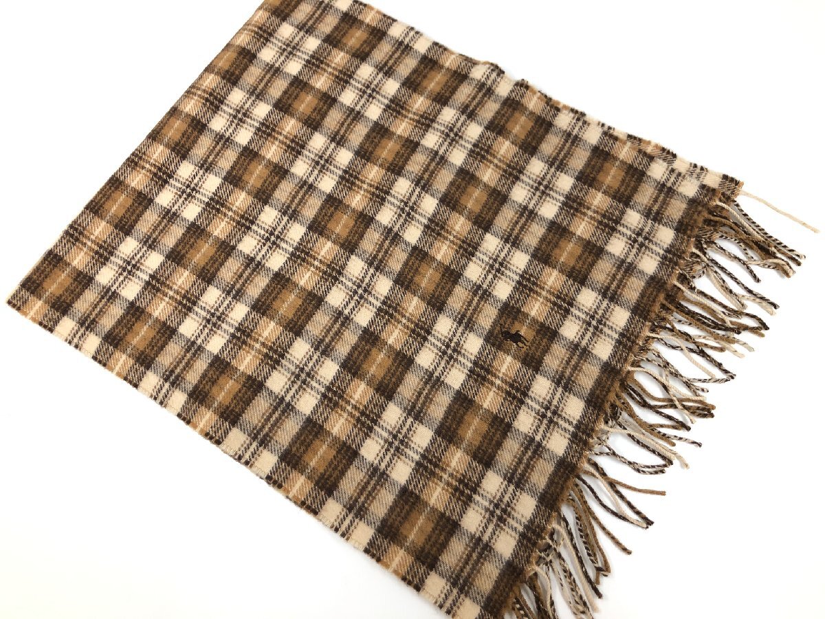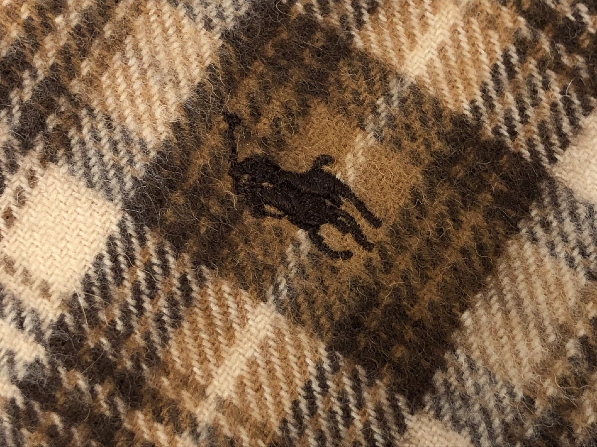 超美品【ポロラルフローレン】 キャメル100% チェック柄 ロングマフラー ストール (メンズ) ブラウン×アイボリー系 英国製 ◇33ME7771◇