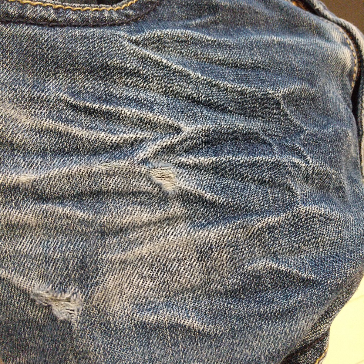 しわ加工されたところに破れがあり、元からのものなのか、着用によるものかわかりません。