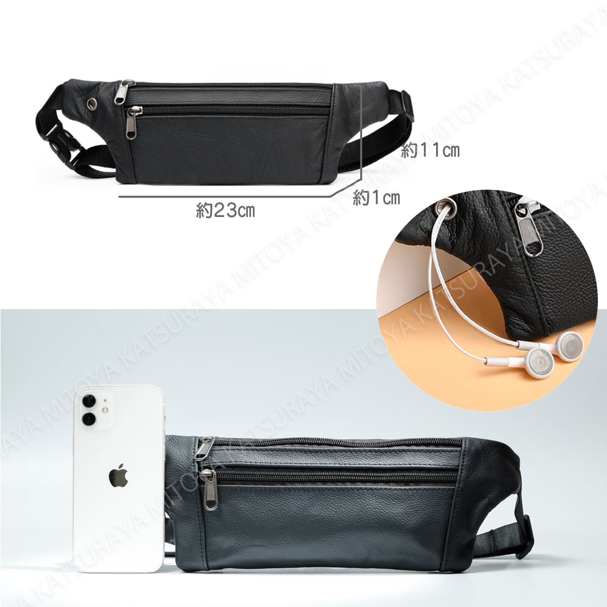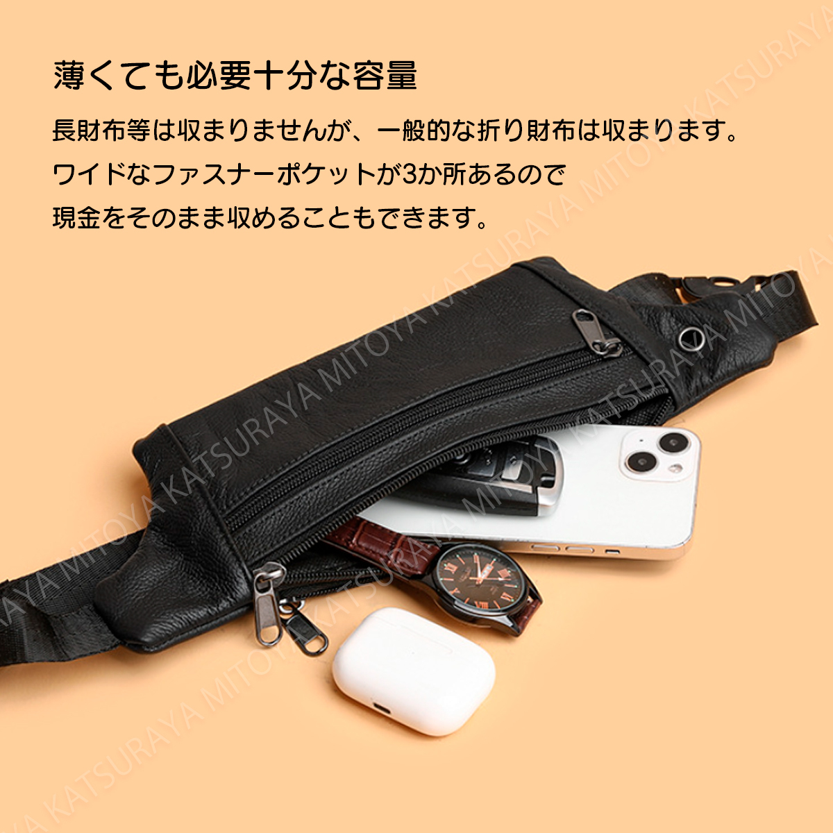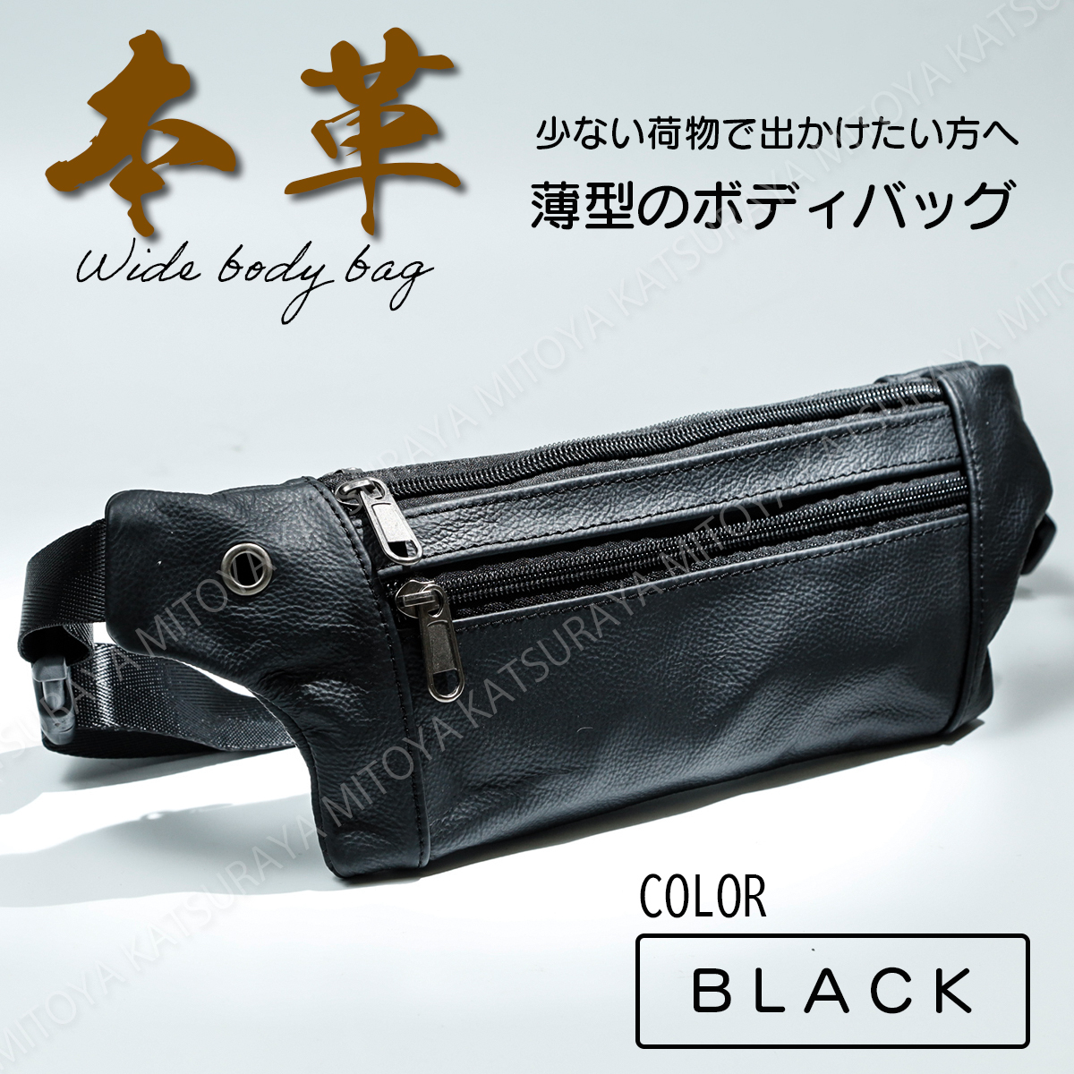 薄型 ボディバッグ 本革 ウエストバッグ メンズ ブラック 黒 牛革 レザー お散歩 斜めがけ 肩掛け ポーチ スマホ ボディー ワン ミニ