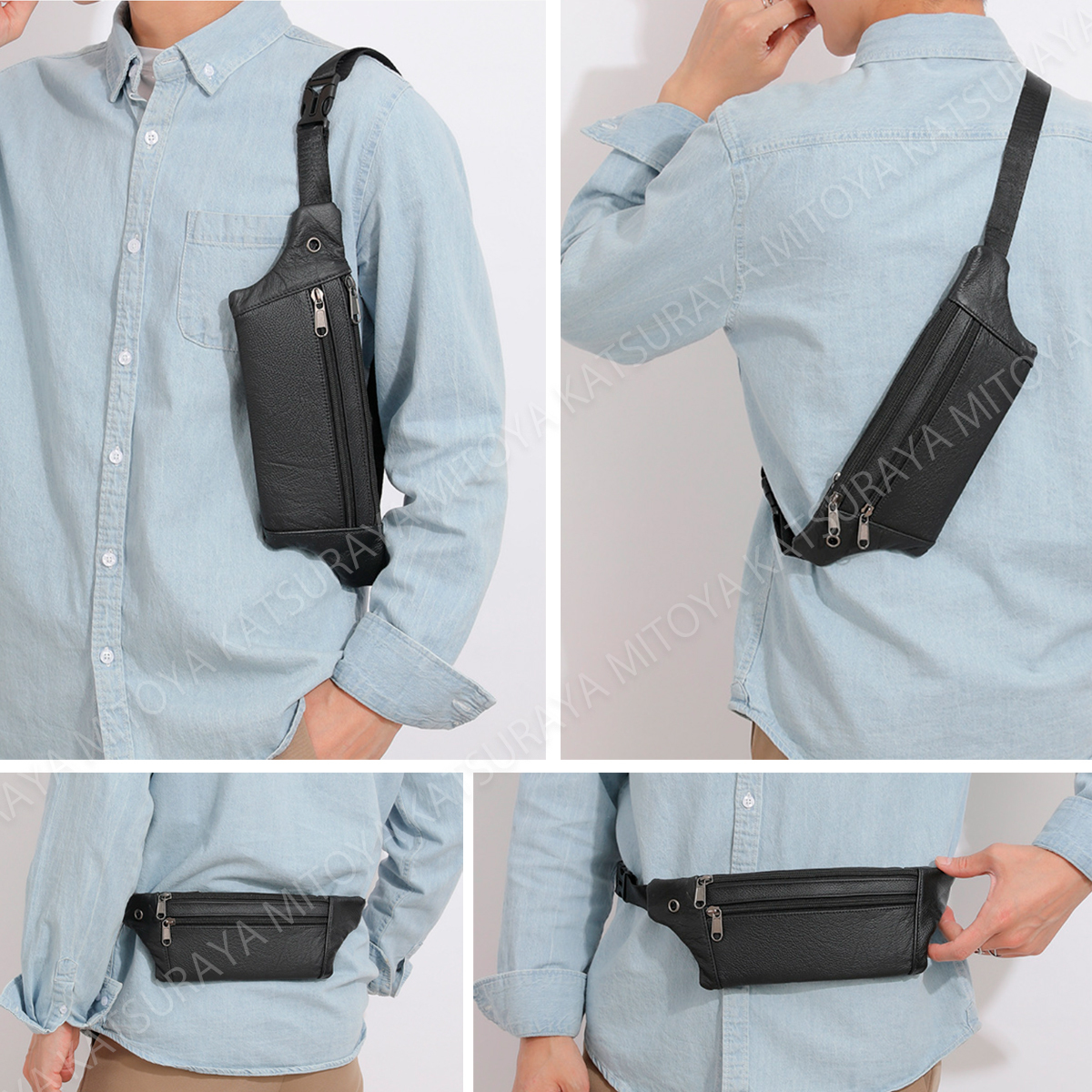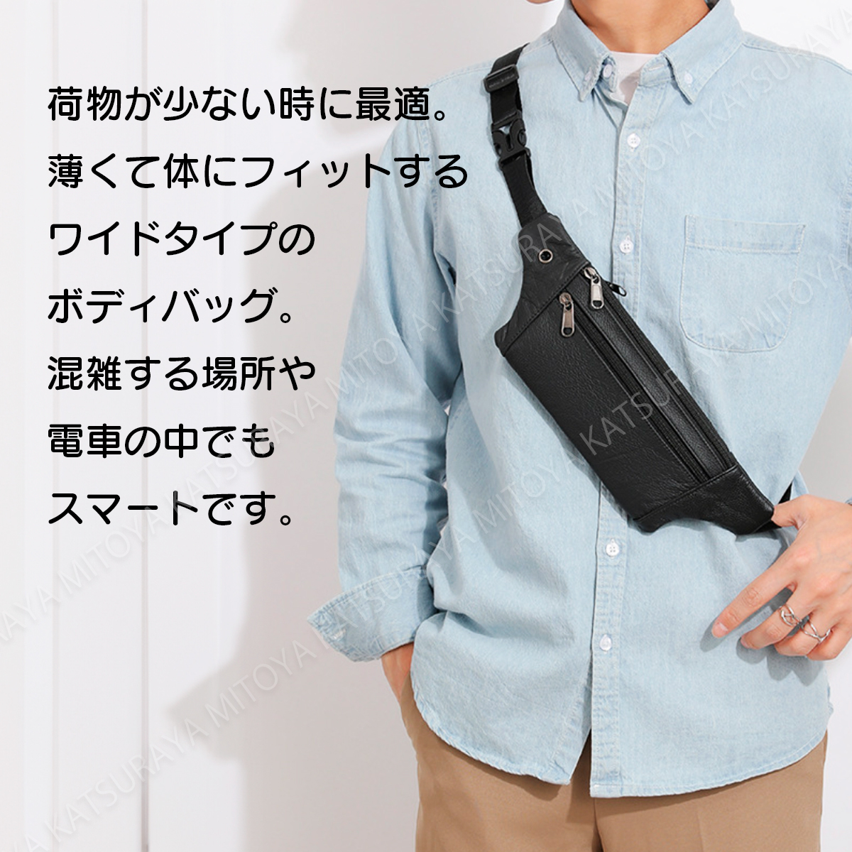 薄型 ボディバッグ 本革 ウエストバッグ メンズ