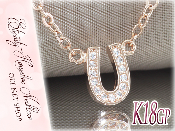 ネックレス レディース 馬蹄 ピンクゴールド 18金 18kコーティング 幸せ 幸運 お守り / K18GP CZダイヤ エタニティホースシューネックレス