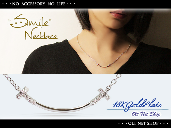 新品/ネックレス/18KGP/T字/スマイル/ダイヤ/シルバー/18金/K18/レディース/ホワイトゴールド/チェーン/小ぶり/シンプル/CZ/WG