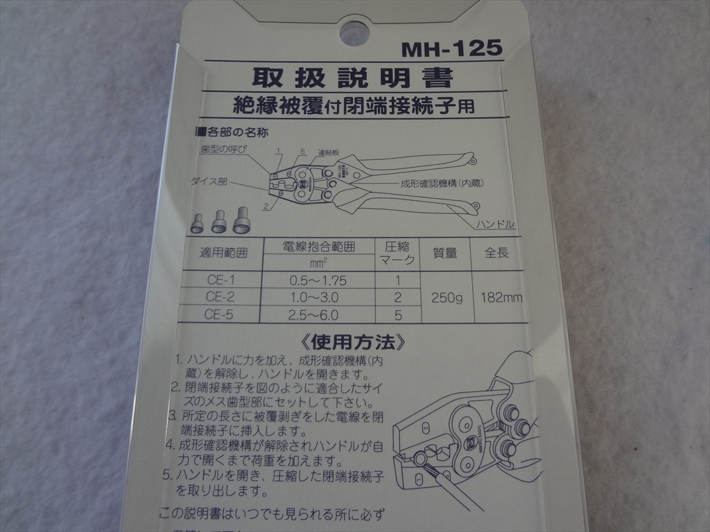マーベル MH-125 ハンドプレス(絶縁被覆付閉端接続子用) 工具です。