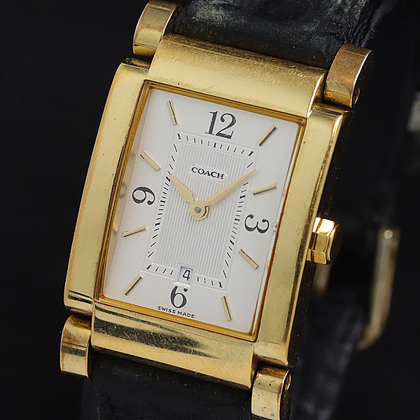 1円 稼働 コーチ W515 QZ シルバー文字盤 メンズ腕時計 3835000 9BJY MST