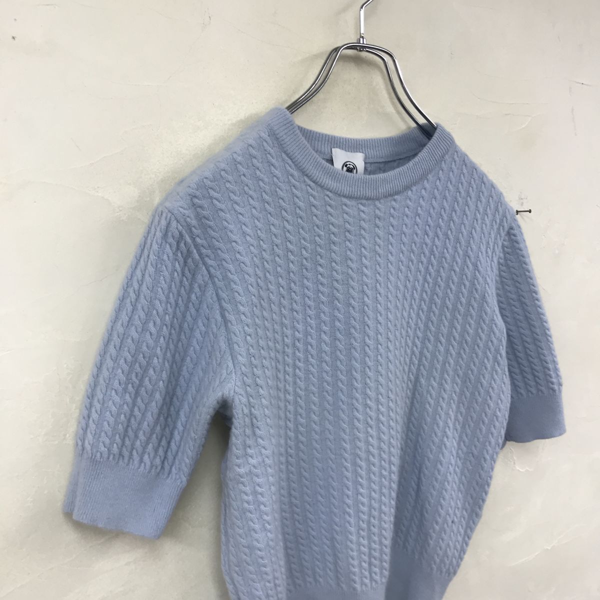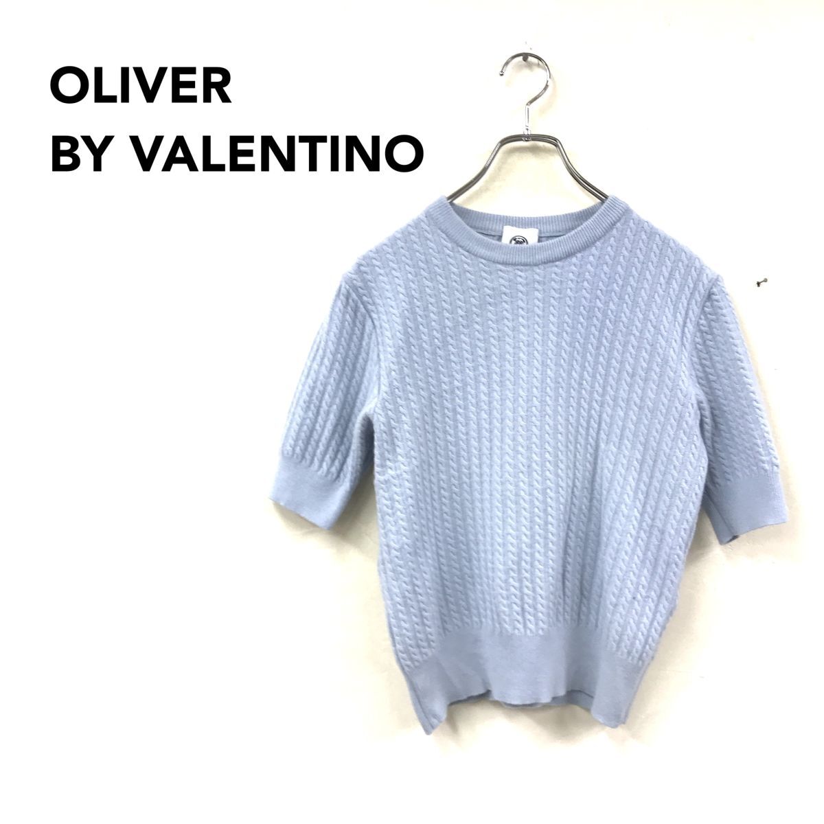 2O1324-G◆ OLIVER by VALENTINO オリバー ヴァレンティノ イタリア製 ウールケーブルニット アンゴラブレンド 半袖 クルーネック ◆ 水色