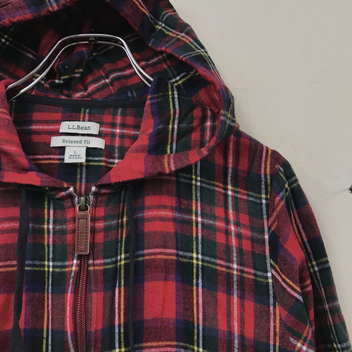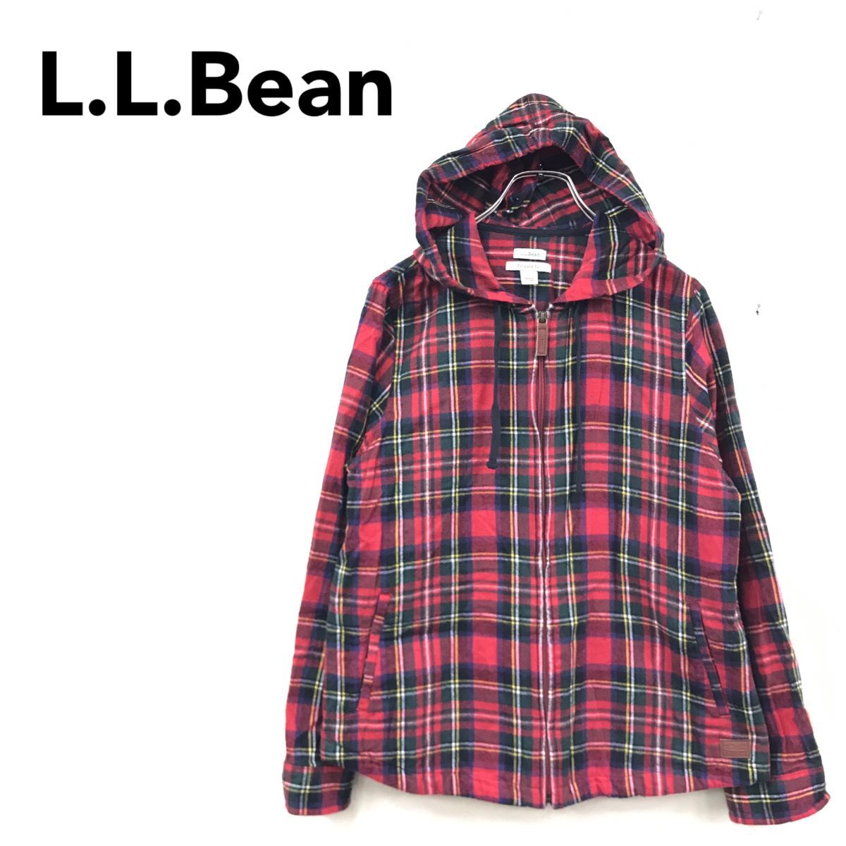 2O1130-R-N◆L.L.Bean エルエルビーン ジップアップパーカー◆サイズL レディース 婦人 フランネル 秋冬 アウトドア チェック レッド