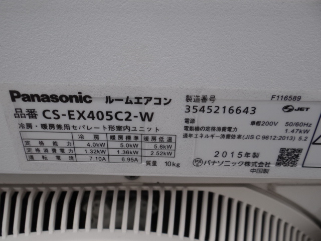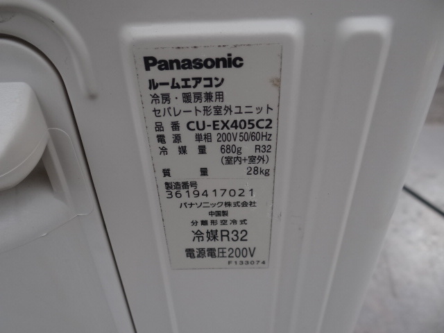 | Panasonic パナソニック ルームエアコン CS-EX405C2-W / CU-EX405C2 200V 2015年製 |