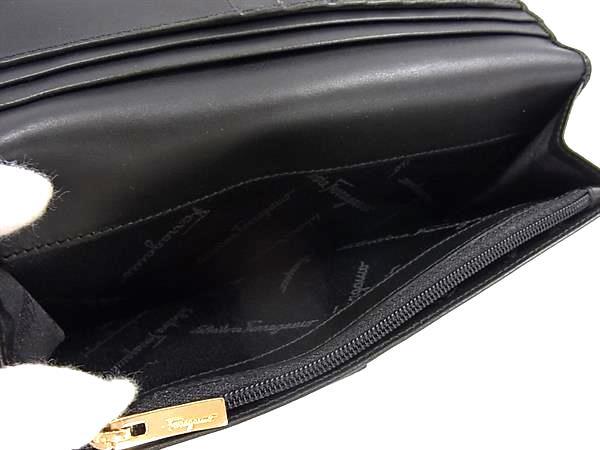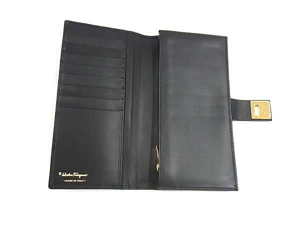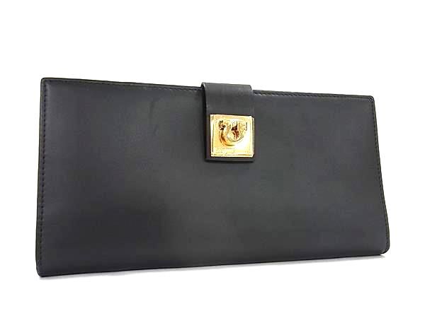1円 ■極美品■ Salvatore Ferragamo フェラガモ IY-220113 ガンチーニ レザー 二つ折り 長財布 ウォレット 小銭入れ ブラック系 FV2482