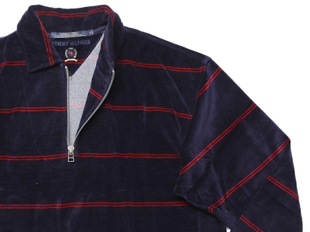 1円★美品★TommyHilfiger トミーヒルフィガー★パイル地ジップアップボーダーラガーシャツ★M【0207016-21112U】ネイビー紺【本物保証】