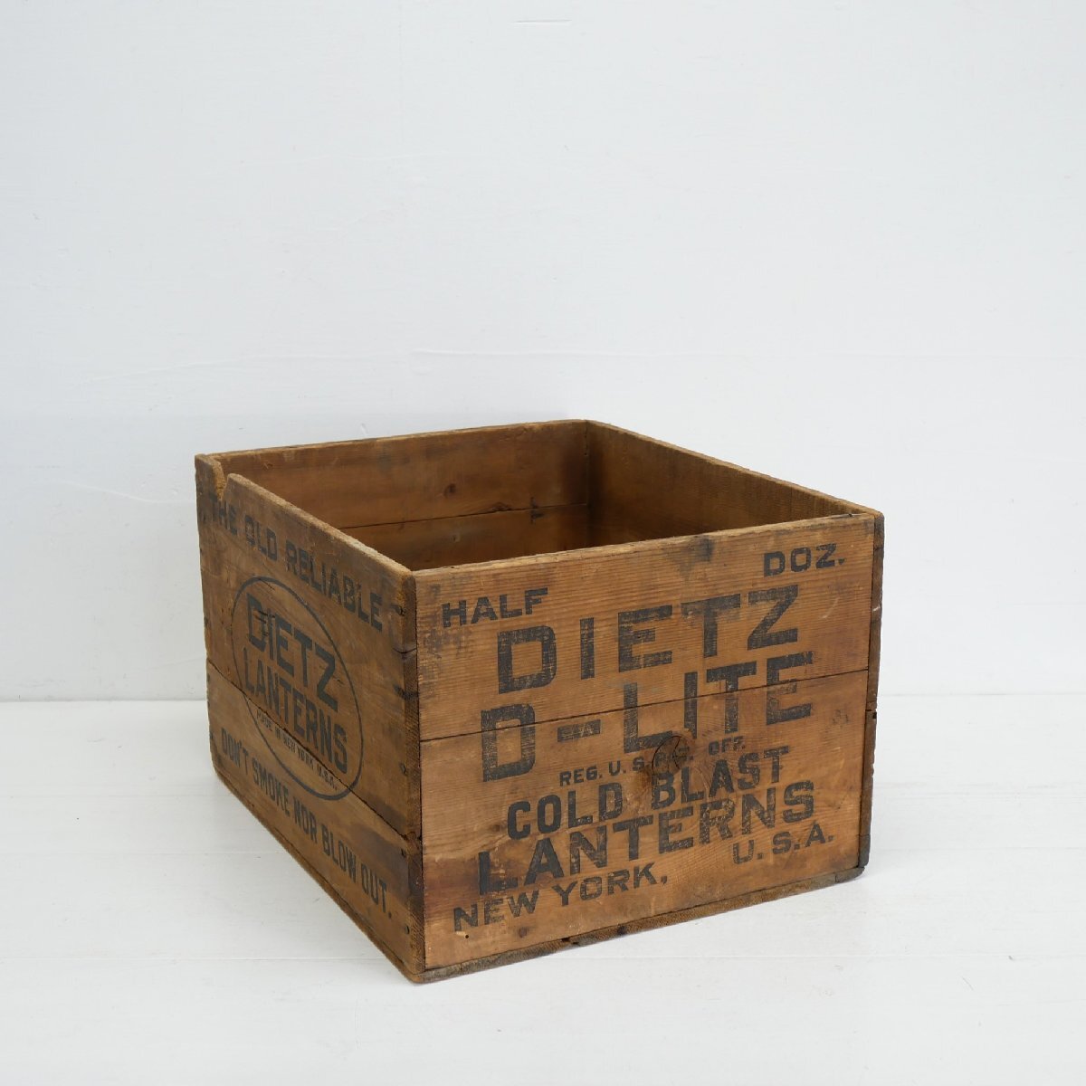 商品説明 explanation | 灯油ランタンで有名な「DIETZ」の木箱です。 年代の詳細は不明ですが、かなり古いモノと思われます。 ヴィンテージ木箱を、ディスプレイ小物や店舗什器にいかがでしょうか。 |