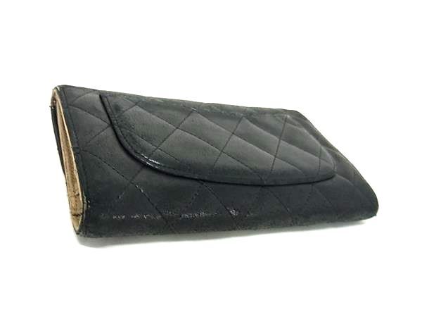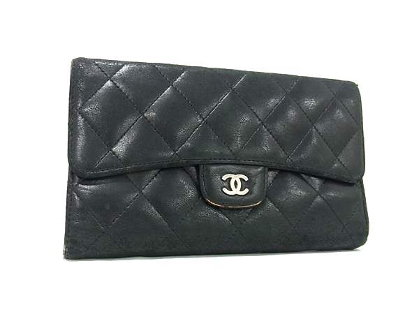 1円 CHANEL シャネル ココマーク マトラッセ ラムスキン 長財布 ウォレット 札入れ カード入れ 小銭入れ レディース ブラック系 FV2415