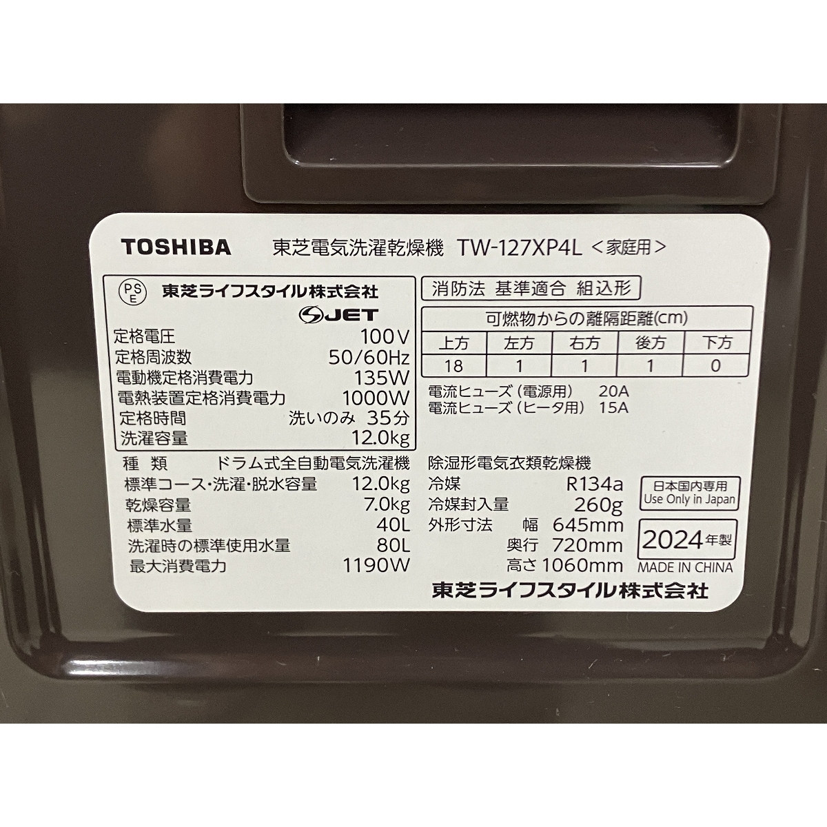 【店頭引取限定】TOSHIBA 東芝 TW-127XP4 2024年製 ドラム式洗濯機 ZABOON 左開き 中古 訳あり 直 K10374374 |
