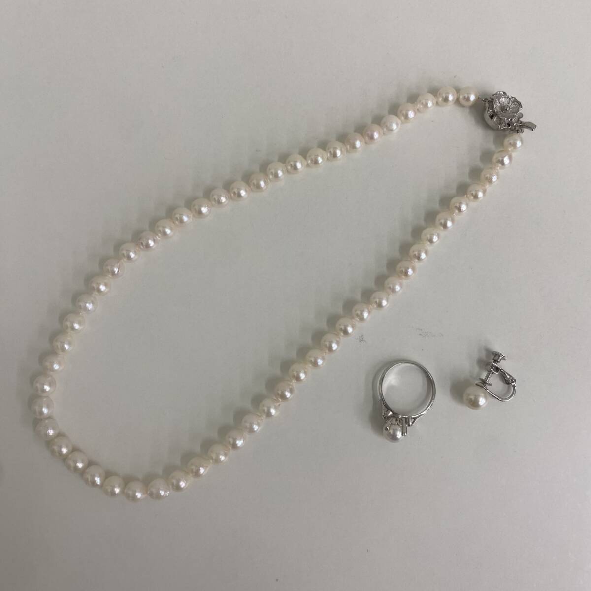 【TS1005?】SILVER刻印 パール? 3点おまとめ ネックレス リング イヤリング 片耳 ジュエリー アクセサリー