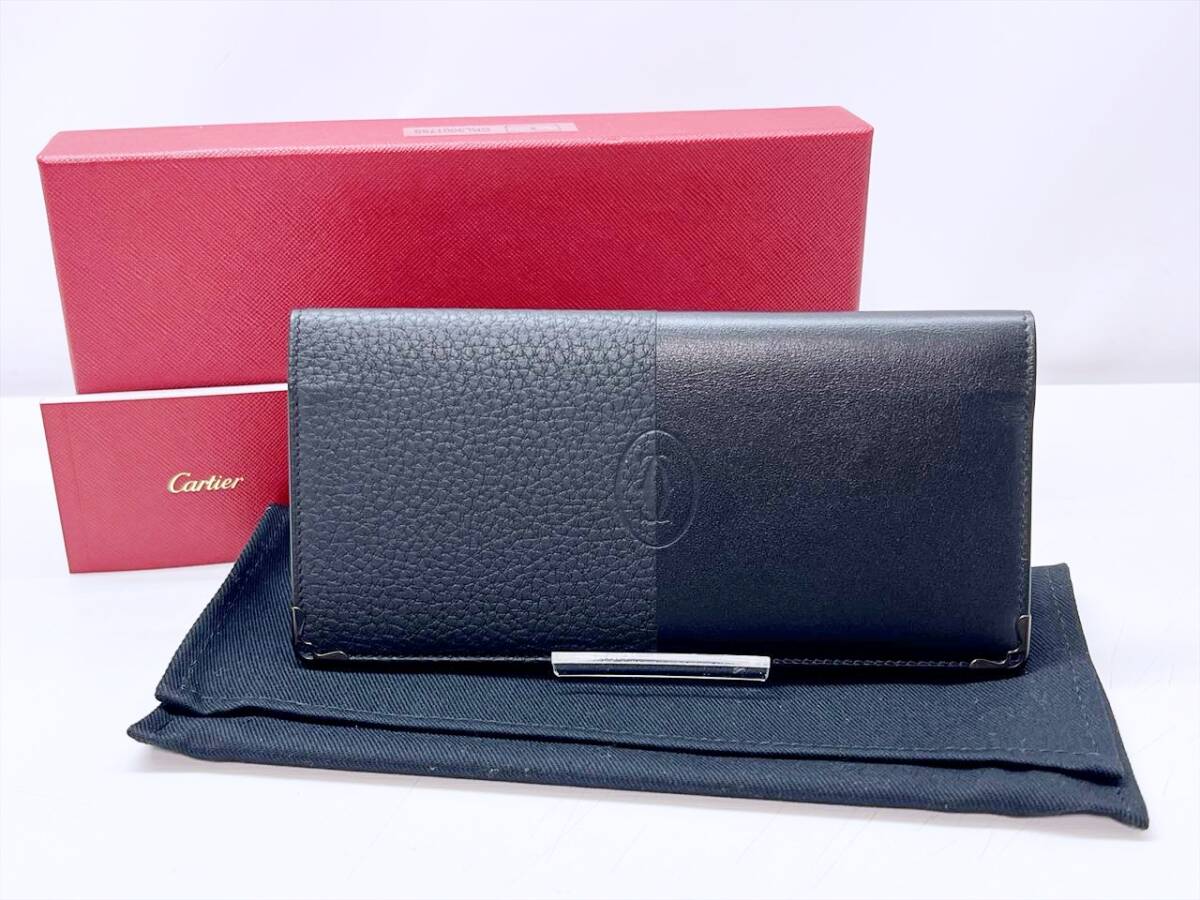レア 未使用保管 Cartier カルティエ マストドゥカルティエ インターナショナルウォレット 二つ折り長財布 長札入れ 小銭入れなし 黒 ツートーン