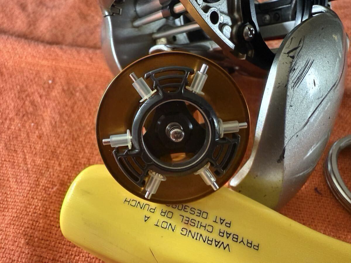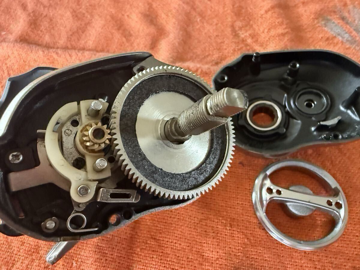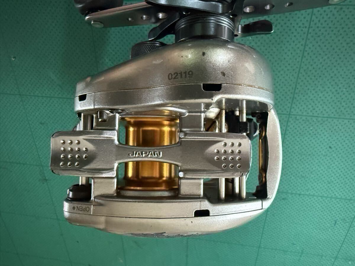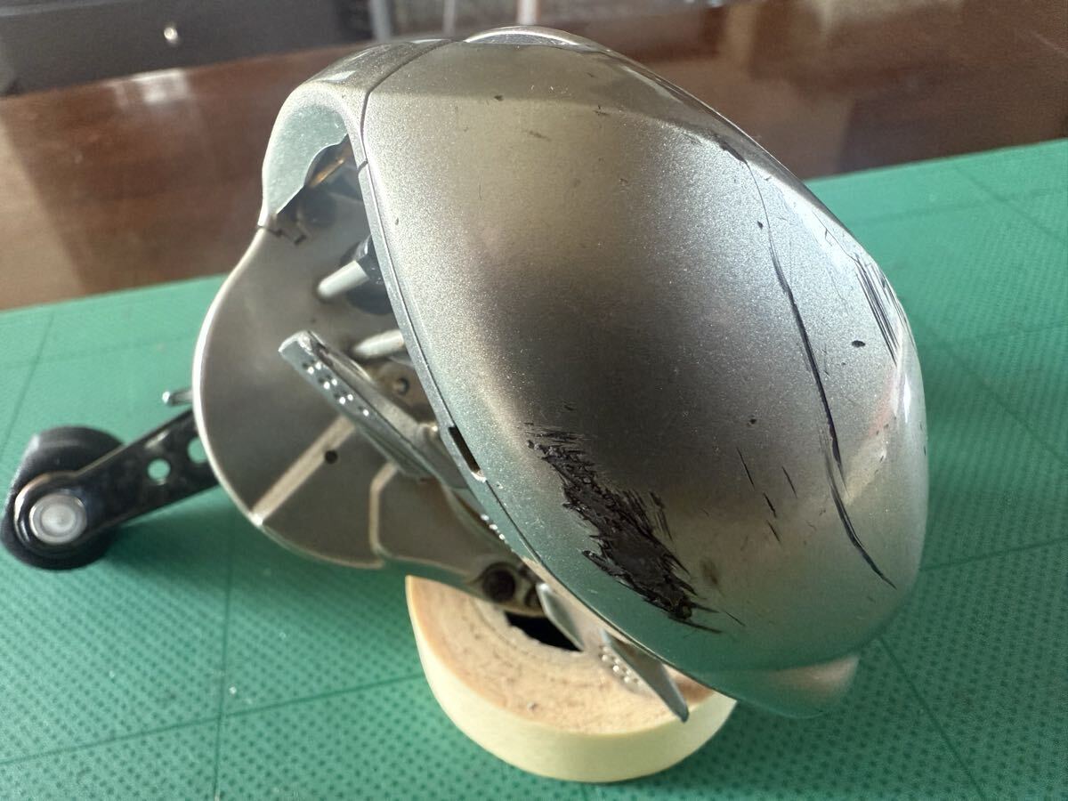 当方 同系機種を複数台使用しているのですが、出品リールは大手中古釣具店で購入し、動作確認時に操作感やギア類の状態が非常に良かった為に予備用として手元に所有していた数台の中で最後まで取って置いた物です