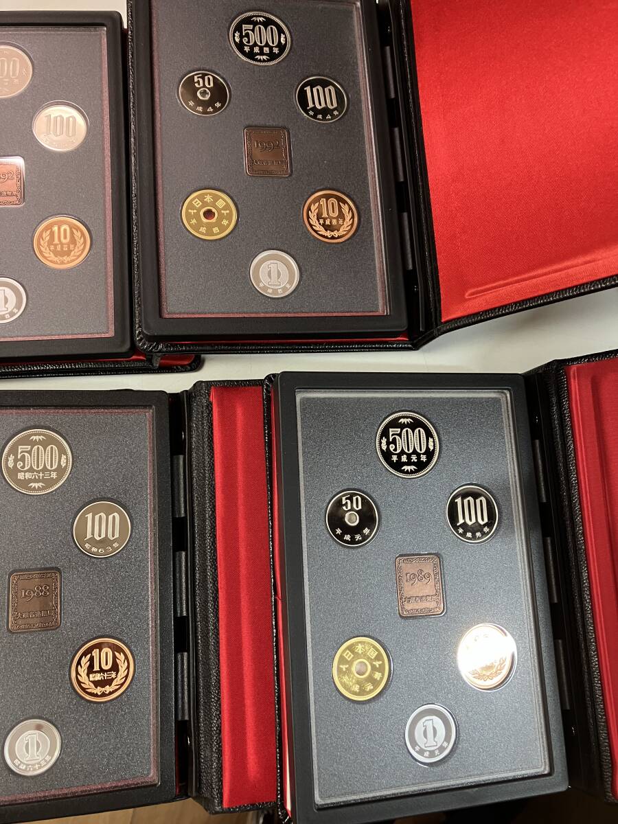 未使用 昭和62年×4 昭和63年 平成元年 平成2年 平成4年×2 貨幣セット9個まとめ ミントセット プルーフコイン 1円5円10円50円100円500円