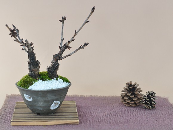 *数量物の為、若干の高さ、枝ぶり、鉢の種類が異なる場合があります。桜のミニ2本立ちの育て方季節感の象徴、日本人にもっとも愛されている樹木です。桜の生育は非常に旺盛で花もよく咲きます。こまめなお手入れを必要としますが、華やかさを楽しめる盆栽の代表です。桜は日当たりを好みますが半日陰でも環境に合わせて育ちます。風通しの良い場所に置いてください。基本は室外管理です。冬は風、霜のあたらない陽だまりがよいです。室内では2-3日を目安にして下さい。水やりは根の生育も早いので水を好みますが、花が咲きにくい原因にもなるので、やりすぎないようにしてください。春から秋は1日に1-2回の水やりをします。