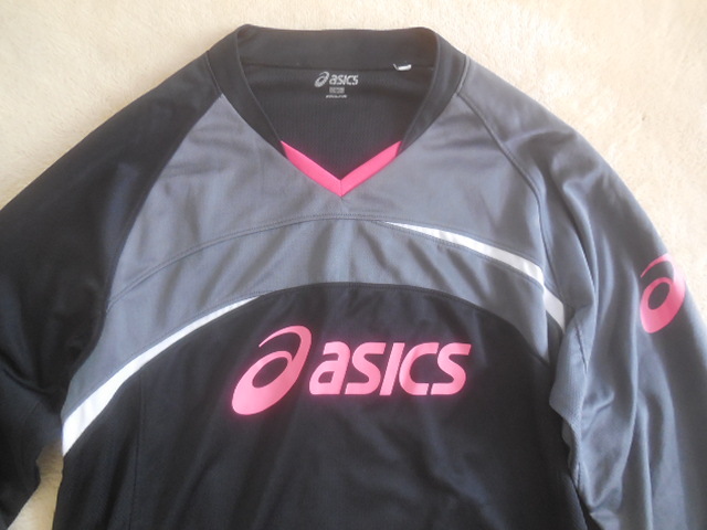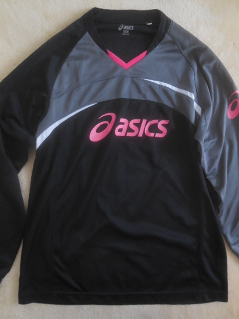 ↑asics↑アシックス↑サイズM↑長袖Tシャツ↑黒×ピンク↑