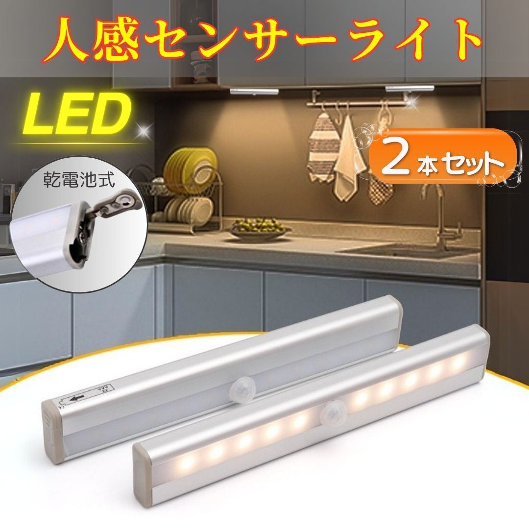 人感センサーライト 室内 電池式 2個セット LED ライト 自動点灯 テープ マグネット 取付簡単 省エネ クローゼット 玄関 階段 足元 寝室