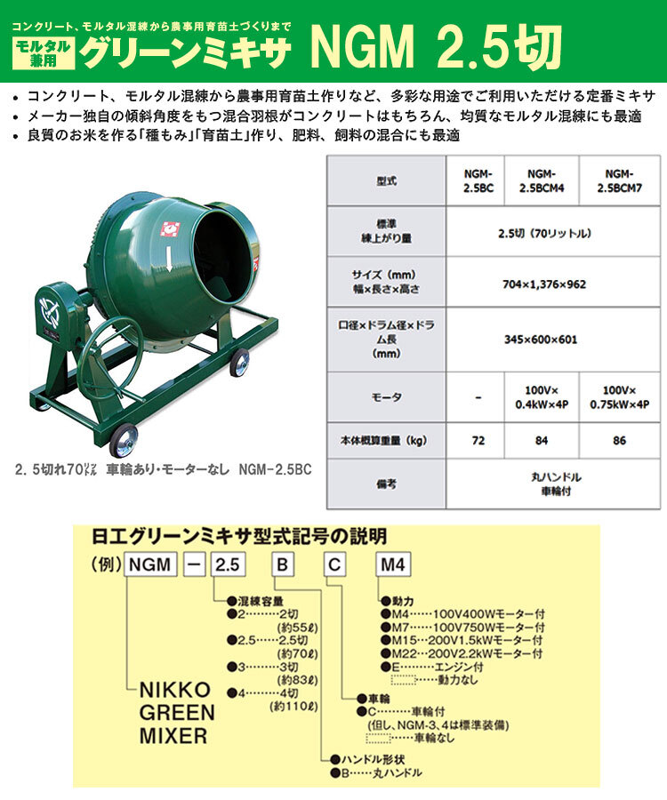 トンボ ミキサー NGM-2.5BC 2.5切 車輪あり・モーターなし