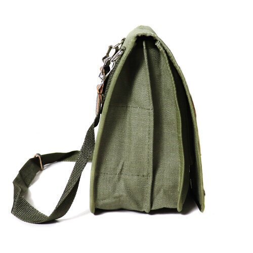 1~6枚目の写真は流用です。 ポーランド キャンバスショルダーバッグ 。ポーランド軍で使用されていたショルダーバッグです。 本来はマップケースとして使用されていました。 高さが変えられるように、留め具が2つ備わっています。 本体寸法 H約30cm×W約25cm×D約12cm 沖縄離島を除く全国500円でお送りいたします、落札価格にプラスでお願いいたします。 キャンプ用品