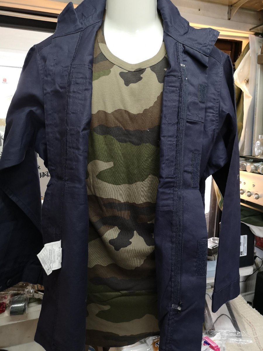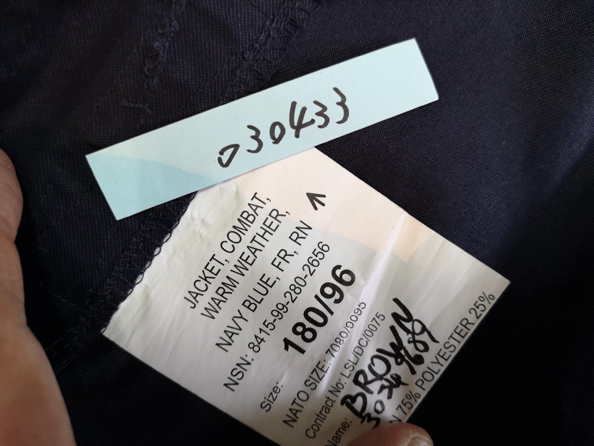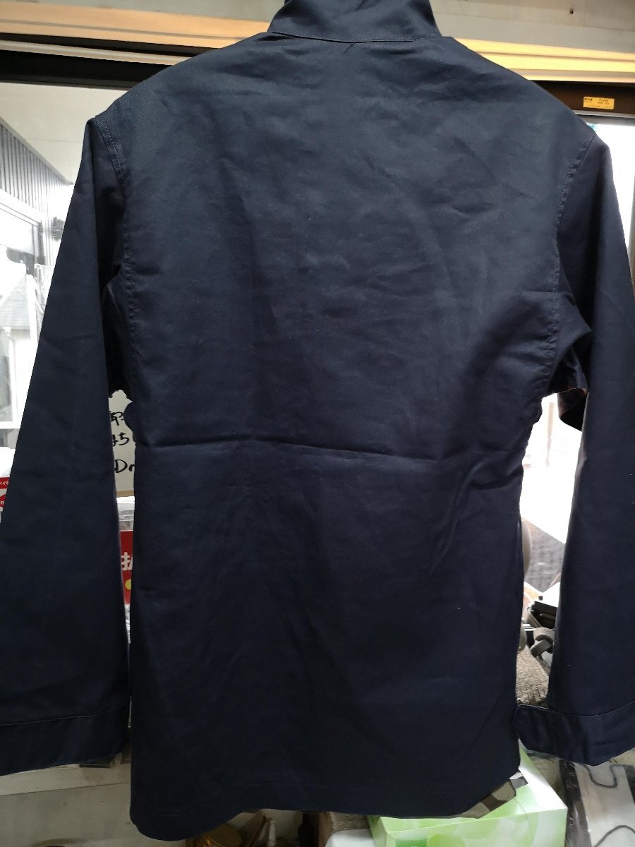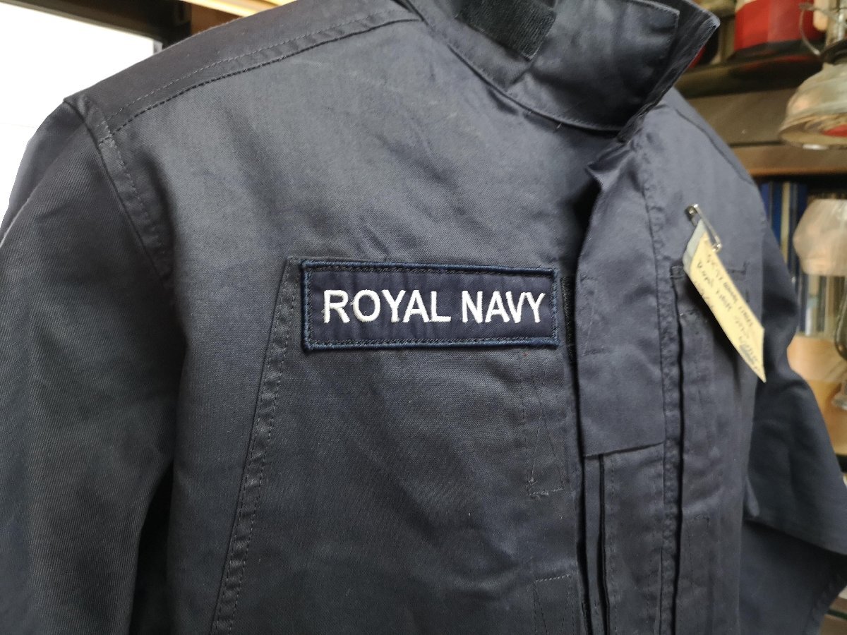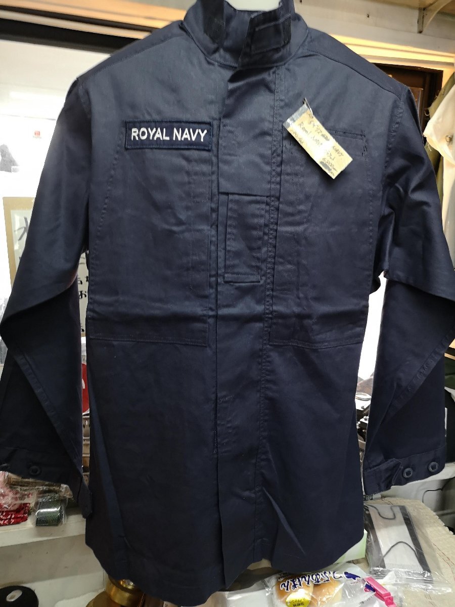 90年代イギリス海軍(ロイヤルネイビー)のコンバットジャケットです。No.4 Working Dressに含まれるアイテムです。ネイビーカラーの生地は薄手ではありますが、強度のあるポリコットンで頑丈ながら軽くて羽織りやすくなっています。フロントはジッパーとベルクロの二重開閉比翼仕様。胸元の左右にはポケットがあり、こちらもベルクロで開閉できます。左右の胸のポケット内にはペン用ホルダーも備わっています。右胸に「ROYAL NAVY」タブ、左腕にイギリス海軍の軍艦旗ワッペンが付いています(余分についているものや逆についていないものもあります)。また胸元には階級章などのタブを装着するためのエポレットがあります。 年々注目度の上がっているイギリス軍のアイテムの中でも気軽に取り入れやすいアイテムの1つです。 ●素材:コットン75% ポリエステル25% ●状態:ユーズド 180/96( 身幅55cm/肩幅50cm/着丈74cm/袖丈60cm ) ※実物アイテムの為、上記サイズに当てはまらない場合がございます。予めご了承下さい。 沖縄離島を除く全国500円でお送りいたします。落札価格にプラスでお願いします。