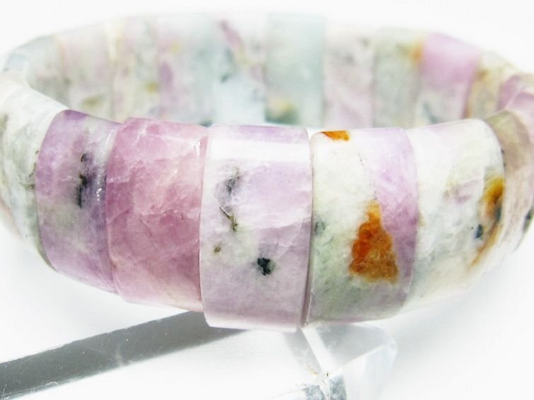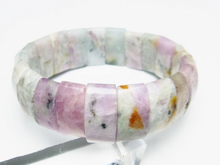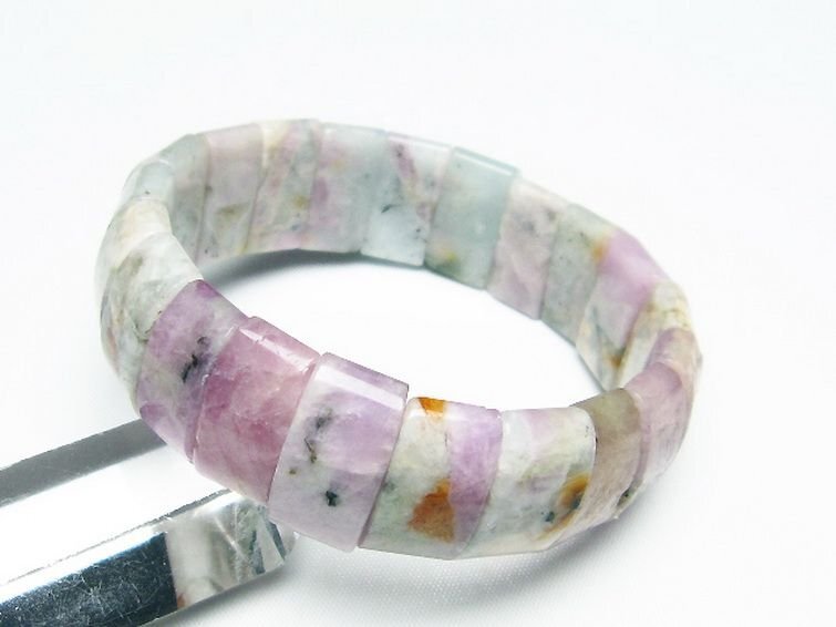 | ■商品名: クンツァイトバングル ■商品ID: T230-1946 ■商品重量:約 78.8g ■商品サイズ: 高約:21mm 横約:12mm 厚約:8mm 内径円周約:175mm(±5mm) 【クンツァイト(リチア輝石)】 クンツァイトはパワーストーンの歴史のなかでは比較的歴史の新しい石です。上品なライラックピンクの色合いが美しく、特に女性人気の高いパワーストーンのひとつです。 スポデューメン(リチア輝石)という鉱物のなかでピンク色のものをクンツァイトと呼び、緑色のものはヒデナイト、黄色のものはトリフェーンにそれぞれ分類されます。 またクンツァイトは個体によって見る方向で色の濃淡がが変わる多色性や、光の当たり方によって一条の輝きをみせるキャッツアイ効果など様々な特性が楽しめます。 クンツァイトは心の傷や不安などによるマイナスの感情を癒すといわれています。トラウマを払拭し穏やかな気持ちで過ごしたいという方におすすめです。 他にも恋愛運を高めるとされ、寛容さや思いやりをもたらしコミュニケーションを円滑にするとされているのでパートナーとすれ違い気味だったり、うまくコミュニケーションが取れていないと感じる方は心強いサポートが期待できるでしょう。 ⇒ クンツァイトをもっと詳しく ◆ワンポイント情報 クンツァイトは日光や加熱、経年で色味が抜けてしまう褪色性を持ち合わせています。また、硬度は6.5~7とそれほど低いわけではないのですが、一方向に割れやすいへき開性が強いため取り扱いには注意が必要です。 |