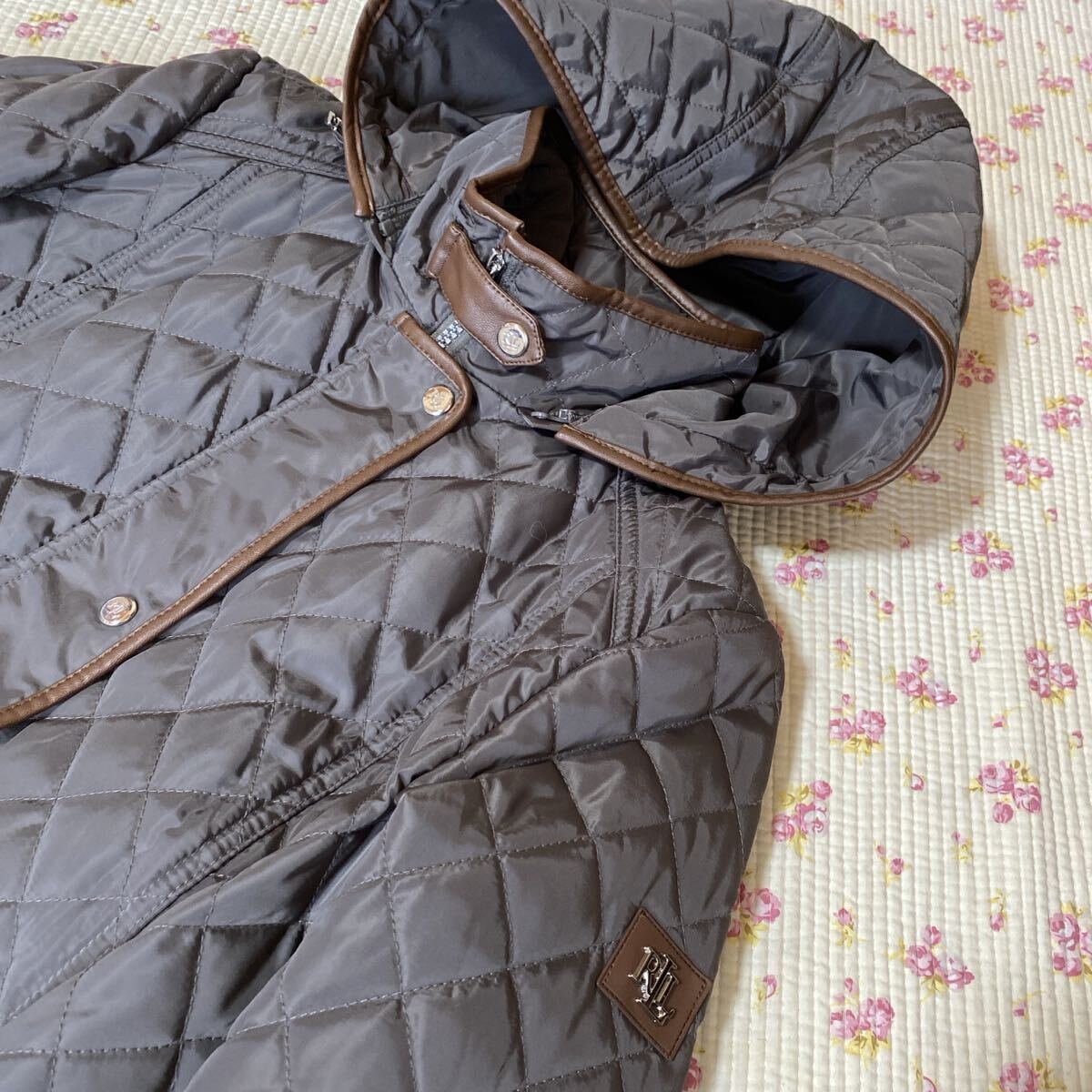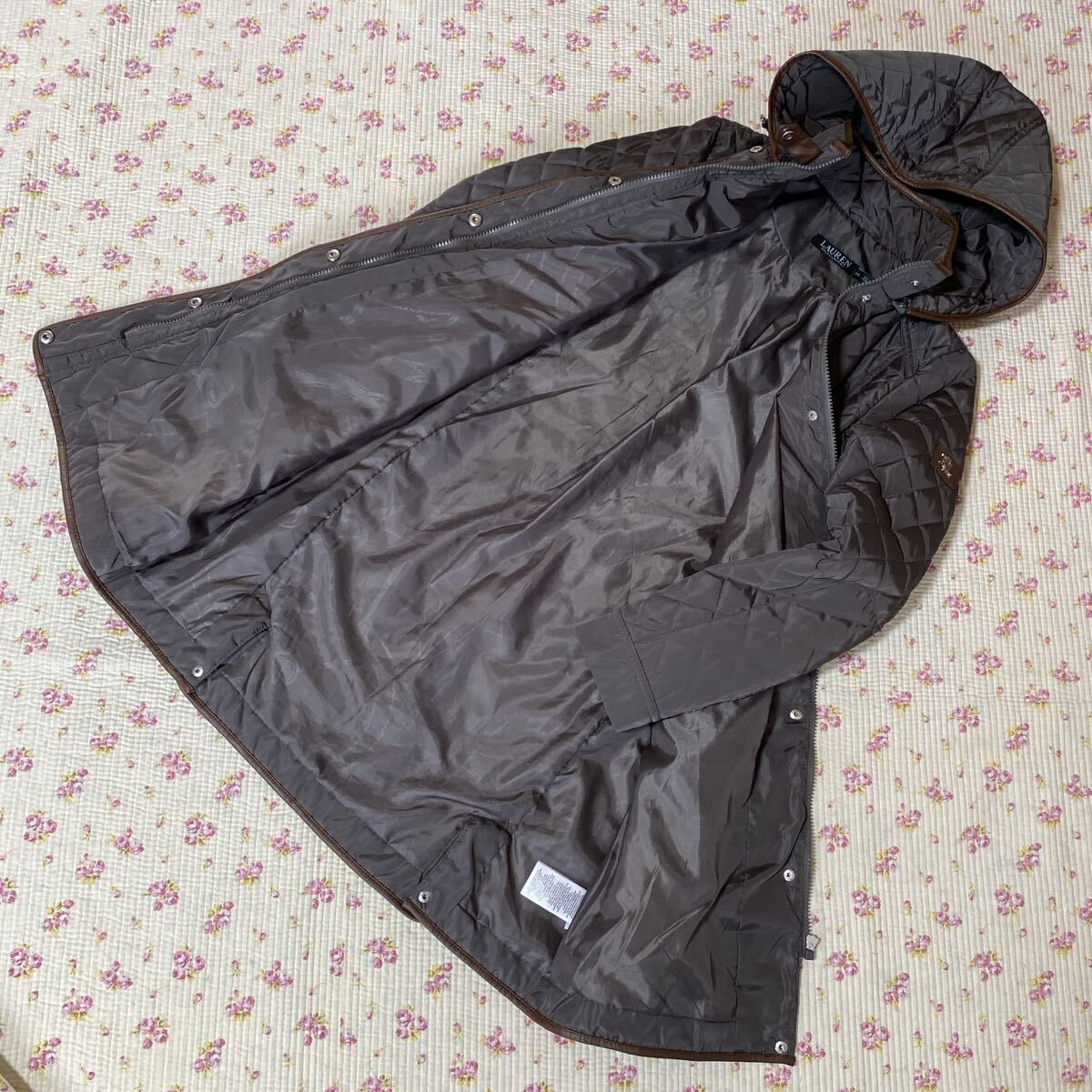 【極美】ローレンラルフローレン キルティング フード付きコート XS カーキ系 DMW