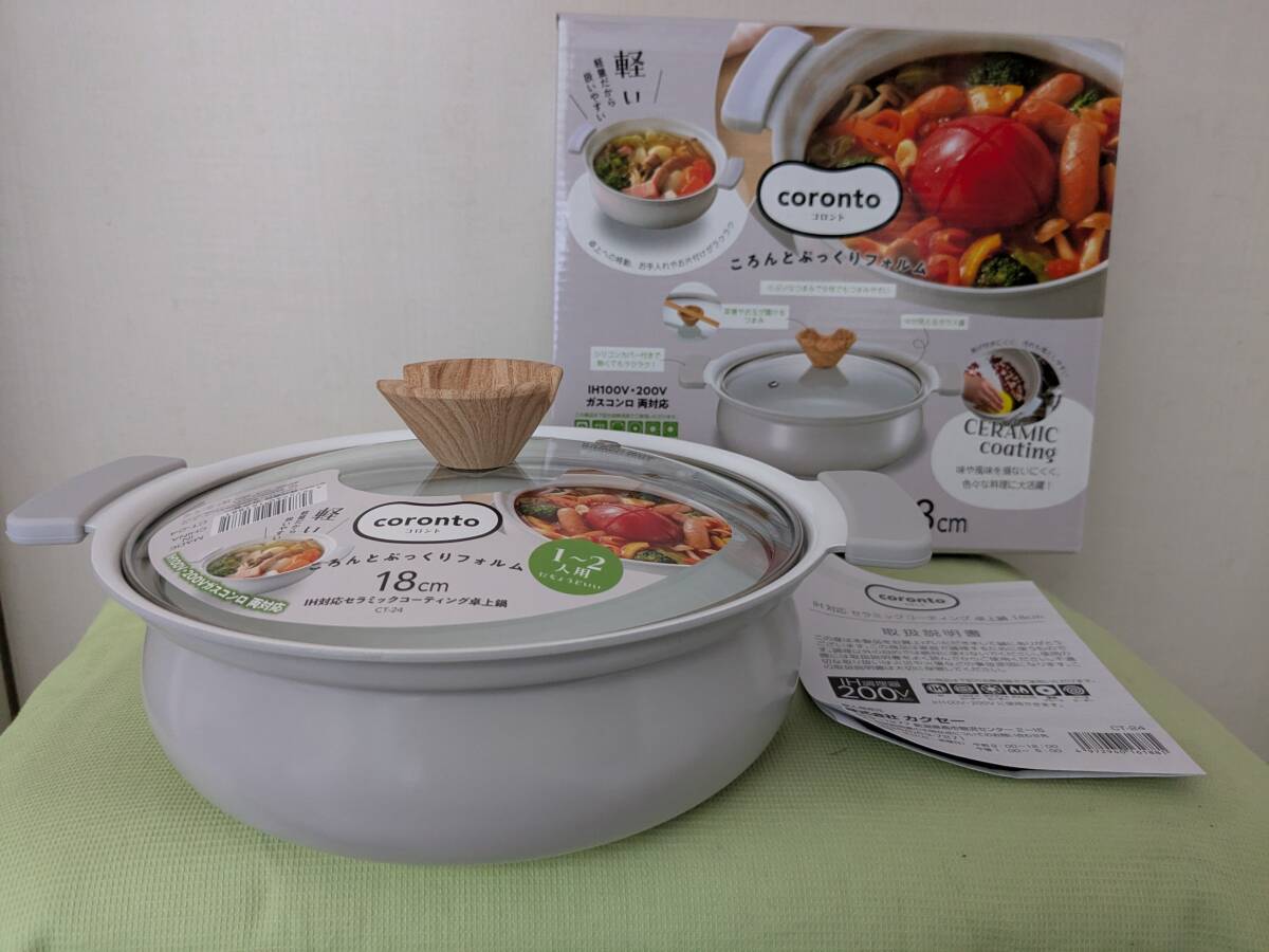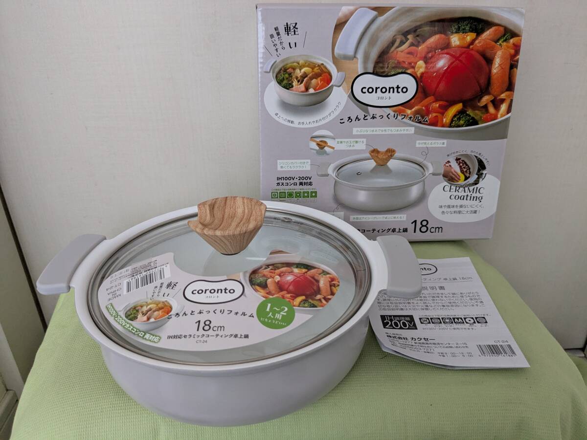【送料無料】【展示未使用品】(株)カクセー  コロント セラミックコーティング鍋 18cm かわいい 軽い  1~2人用