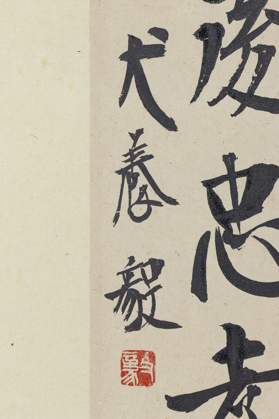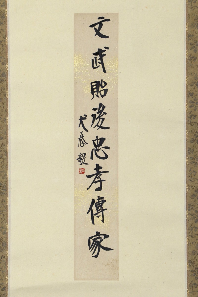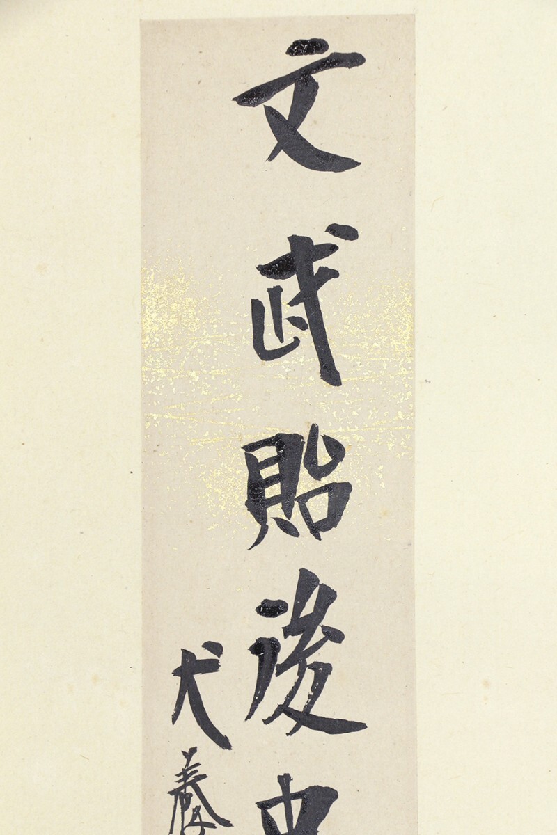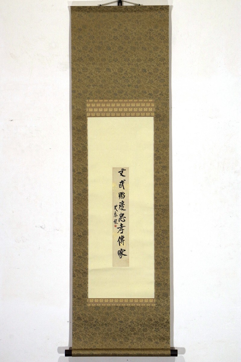 総丈サイズ…横 35.5 × 縦 126.5 cm 紙本・箱入 状態…表具少オレ 本紙微少オレ 【印刷ではありません】 【真作】 犬養木堂 政治家。岡山県生。名は毅。立憲改進党の結成に参加。憲政擁護を掲げ、「憲政の神様」と呼ばれる。立憲国民党総裁、革新倶楽部総裁、立憲政友会総裁、文部大臣、逓信大臣等を歴任し、昭和6年に内閣総理大臣となるが、翌昭和7年(1932)、五・一五事件にて命を落とした。78歳。 |