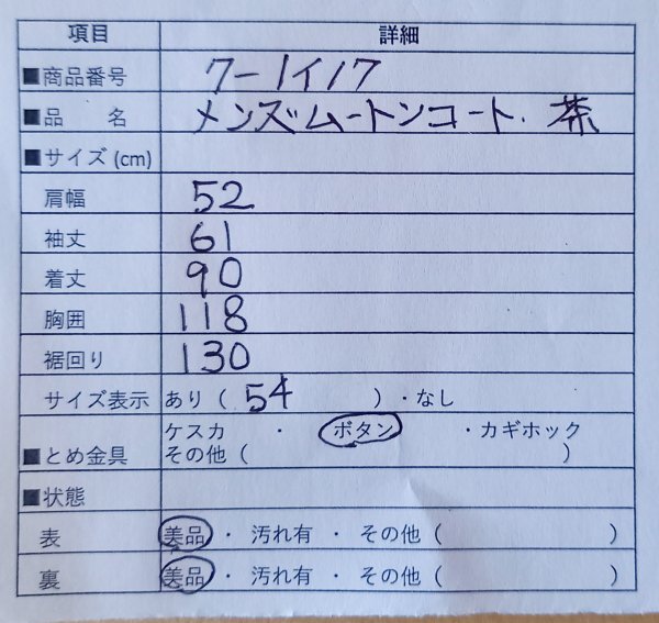■商品説明 El Gamo Madrid Made in Spainの ムートンコートです。 飽きのこない定番のデザインで、 通勤~普段のお出かけまで幅広くお使い頂けます。 ■売り切れ必至!■ 広告宣伝のため特別SALE価格にて出品中です。 高品質毛皮をお探しの方、この機会をお見逃しなく! 商品を受け取られましたら、 24時間以内に受取確認手続きをお願い致します。 (ご了承いただけない場合は今後の入札をお断りする場合が有ります) ■サイズ 画像に記載の通り ※サイズ54ですので日本サイズでXXL程度かと思いますが 念のためお手持ちのコート等と比較なさってください。 ※サイズ計測については内寸表示 ※毛先までのサイズです。 ※胸囲は留め金具~留め金具まで こちらの商品の出荷につきましては、 決済後出荷まで土日を除き~4日程度お時間頂戴しております。 余裕を持ってご入札をお願い致します。 ※良好 ・出来るだけお安くご提供するため 化粧箱・ギフト包装・カバーなどのサービスは 行っておりませんのでご了承ください。 ・評価に悪いが有る方・評価の低い・新規IDの方は 入札の取り消しをさせて頂きますのでご了承下さい。 プロフィールに記載しておりますとおり、 当方連絡から、土日を除き、 3日以内に決済頂ける方に限らせて頂きます。 (ご連絡・入金が無い場合、落札の取り消しを致しますので、 ご注意ください。 ) | |