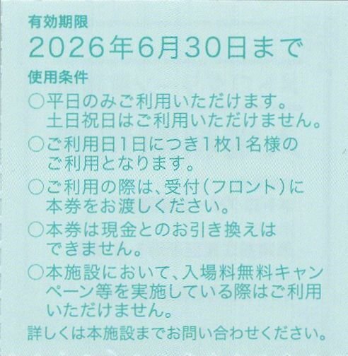 ・本券1枚につき、お一人様1日1回のみ有効です。
