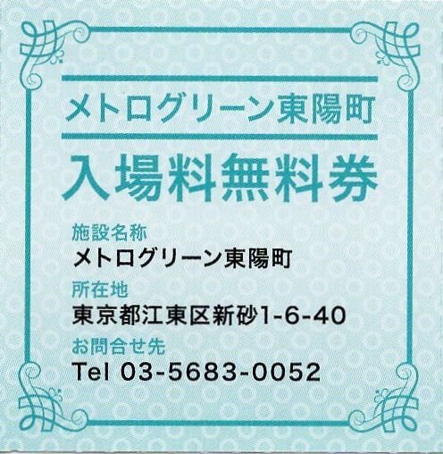 ・東京メトロの株主優待 メトログリーン東陽町 入場無料券(平日のみ)です。