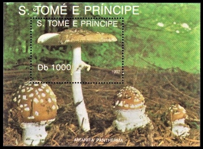la55y1-3s サントメプリンシペ1992年 テングタケ 茸シート 10.5×8㎝