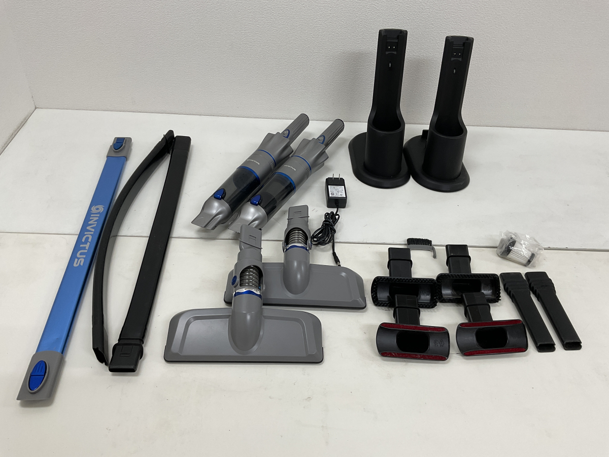 【J754】ジャンク品 Invictus One INV2209000001/INV-102 SIL 2台 動作確認・簡易清掃済み インビクタスワン まとめ売り ※必ず入札前に最後までお読みください。また、入札された段階で、記入内容に同意したものと判断いたしますので、熟読の上ご入札いただくようお願いいたします。 ※落札をされた後に返品をされる方が大変多く見受けられます。 商品の説明欄を必ず熟読いただき、返品は受け付けませんのであらかじめご了承ください。 ※写真に写っているものが付属品の全てとなります。3658/3200 ①型番【 INV2209000001】2024年製 ・電源が入るか → 〇 ・作動するか→ 〇 ・ヘッド型番【不明】 ・充電アダプター無し ・ダストカップ割れ無し ・パイプへこみ ・メッシュフィルター無し ・動作時異音あり ・充電台の底ネジ欠損 ②型番【INV-102 SIL】2024年製 ・電源が入るか → 〇 ・作動するか→ 通電するが動作吸引しない ・ヘッド型番【不明】 ・充電アダプター型番【GQ12-140080-AJ】 ・ダストカップ割れ無し ・パイプ(青)無し ・充電スタンドネジ欠損 ・発送サイズ→140サイズ 料金については下記表を参照ください。 ■上記の項目については確認しました。 ■アルコール除菌等にて簡易的な清掃は行いましたが、汚れが残っている場合があります。 ■中古品のため小さいすり傷や使用感があります。 ■動作確認につきまして、多数在庫を抱えているため電源接続できるものはかなり簡易的な動作確認しか行っておりませんので、返品・返金には対応致しかねます。問題があっても部品取りや修理などをベースに用途を見出せる方のみ入札にご参加ください。 ■記載以外の不具合や問題が生じても保証できません。 ■落札後の商品に対する見解の相違によるクレームや一方的な返品の要求も一切お受けいたしません。 ■他商品と組み合わせて使用しているパーツもございます。予めご了承くださいませ。 ■在庫多数のため、出品ページ記載のメーカー、型番等入力誤りがある可能性がございます。写真を確認していただき判断していただくようお願いいたします。 ■当商品の正常な動作や操作方法等詳しくは把握しておりません。細かな動作状況まではわかりかねますのでご了承ください。 ■連続動作時間に関しましては、フル充電での計測をしていない為、不明です。 ■細かな動作確認、シミや汚れ、ヒビ、欠け、傷などは簡単にチェックしておりますが、見落としがある場合がございます。 ■中古及び、ジャンク品にご理解のある方のみ入札ください。 ■写真はPCの画面設定やカメラの性能、光などにより実際の色と異なる場合がございます。 ■商品の紛失、又は破損のような事故の際には当方は一切の責任を負いかねますので、ご了承いただきご選択お願いします。 ■取引に不安がある入札・落札者は、削除させて頂く場合がございます。 ■落札後3日内に、お名前・ご住所・ご連絡先をご連絡いただけない場合や、ヤフーかんたん決済期限までに入金が確認できなかった場合は、お取引の意思がないとの判断をさせていただく事になり、落札者様都合にてキャンセルとさせていただきますので、ご了承願います。 ■商品は簡易包装・リサイクル梱包での発送となります。 【取引連絡】 ・質問や取引連絡は、平日午前9時〜午後4時までとなります。 ・日曜日・お盆・年末年始は連絡が遅れますのでご了承ください。 | |||