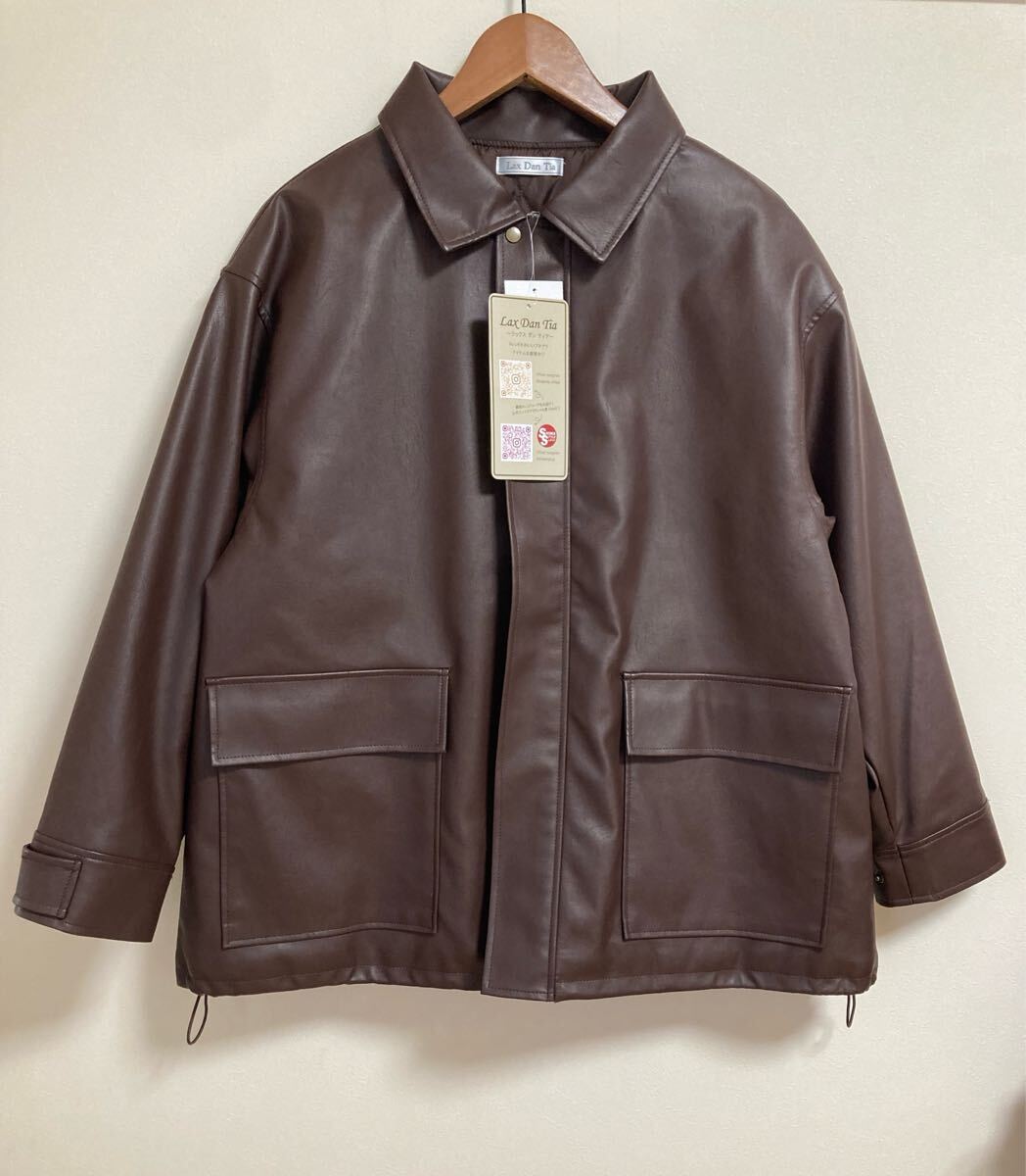 しまむらで購入した、Lax Dan Tiaラックスダンティアのレザーブルゾンです今年流行りのキレイなブラウンが目を惹きます