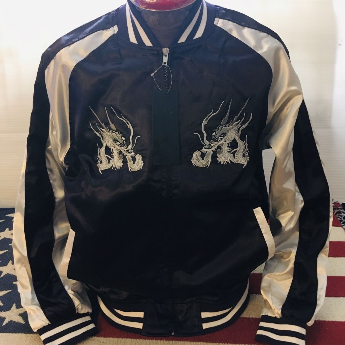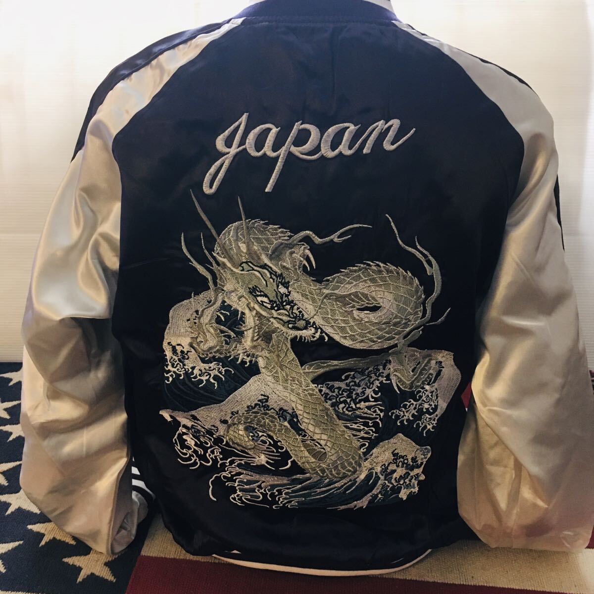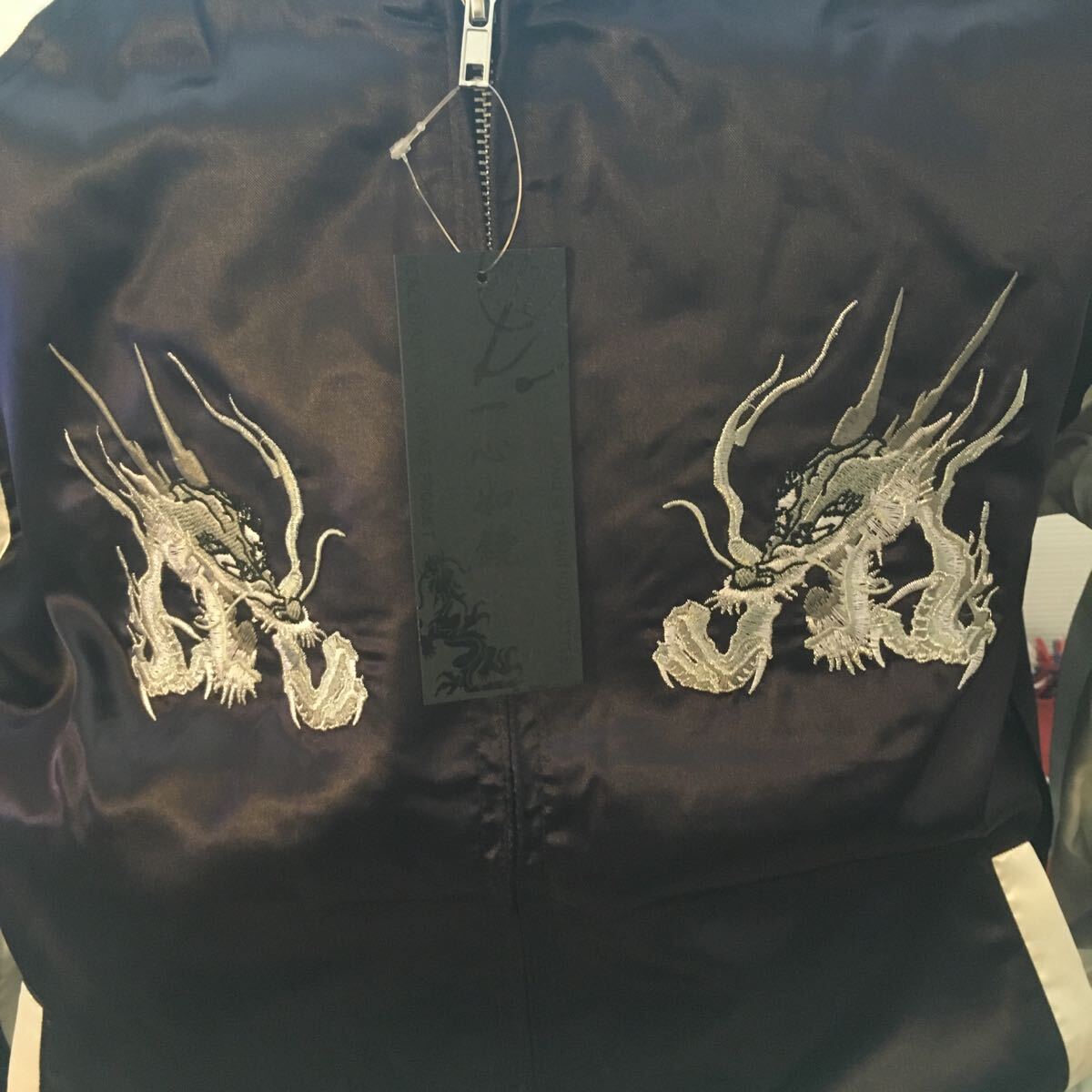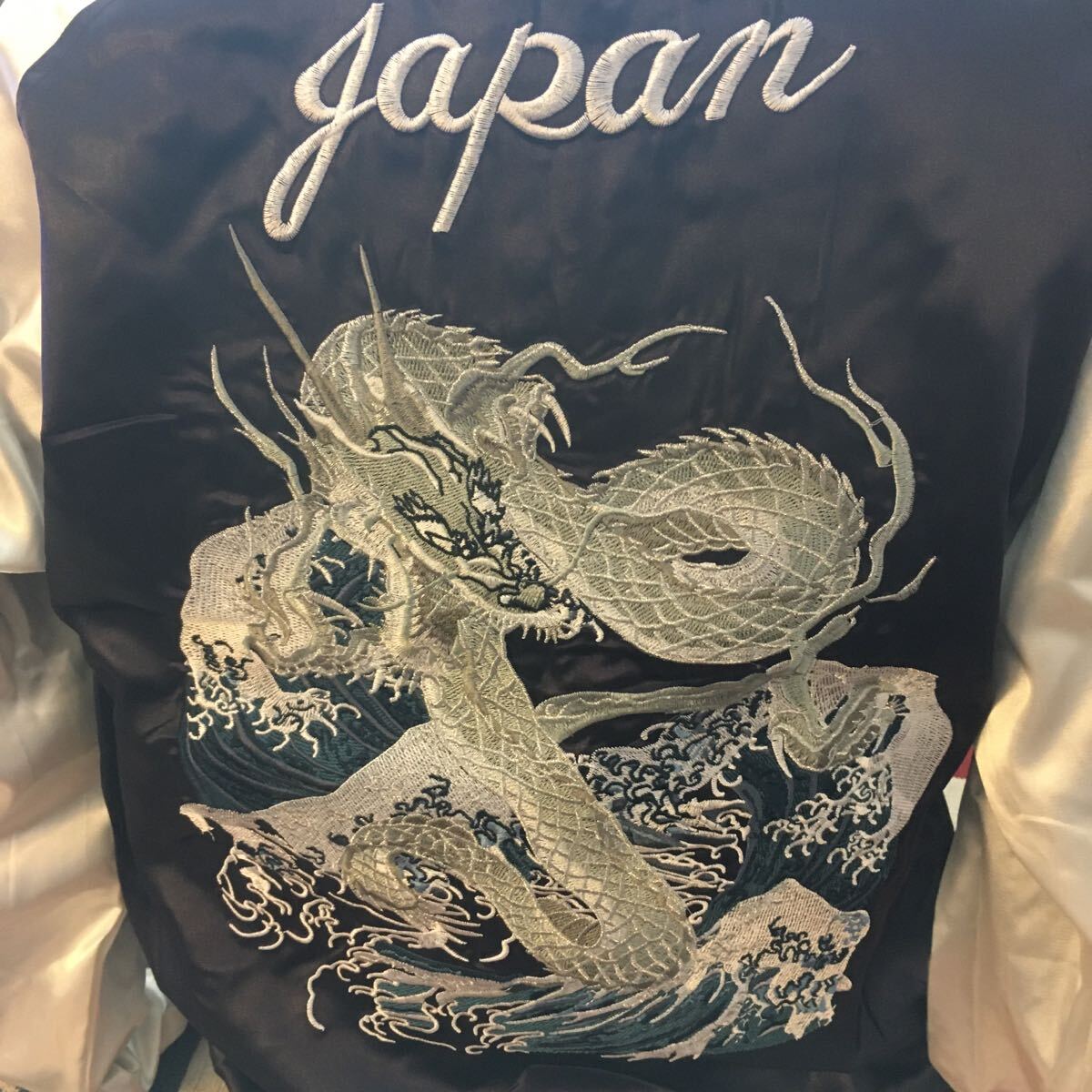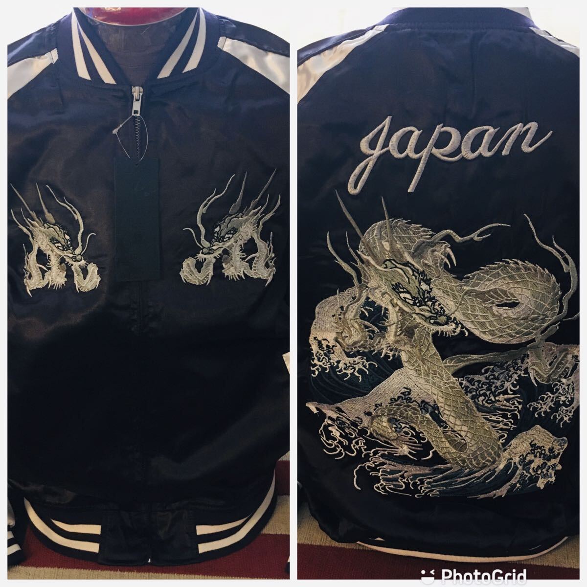 タグ付き新品 未使用 XL サテン 和柄 銀龍 スカジャン パープル