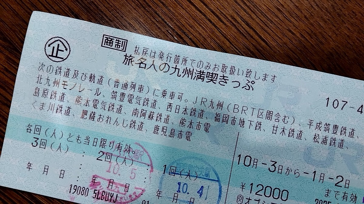 旅名人の九州満喫きっぷ 2回使用済み、残り1回券のお譲りです。