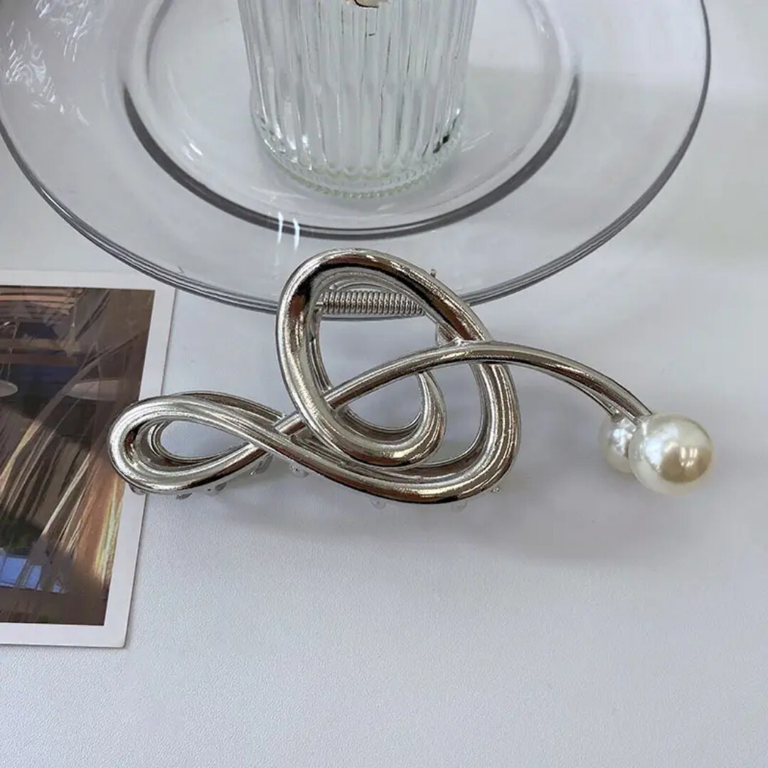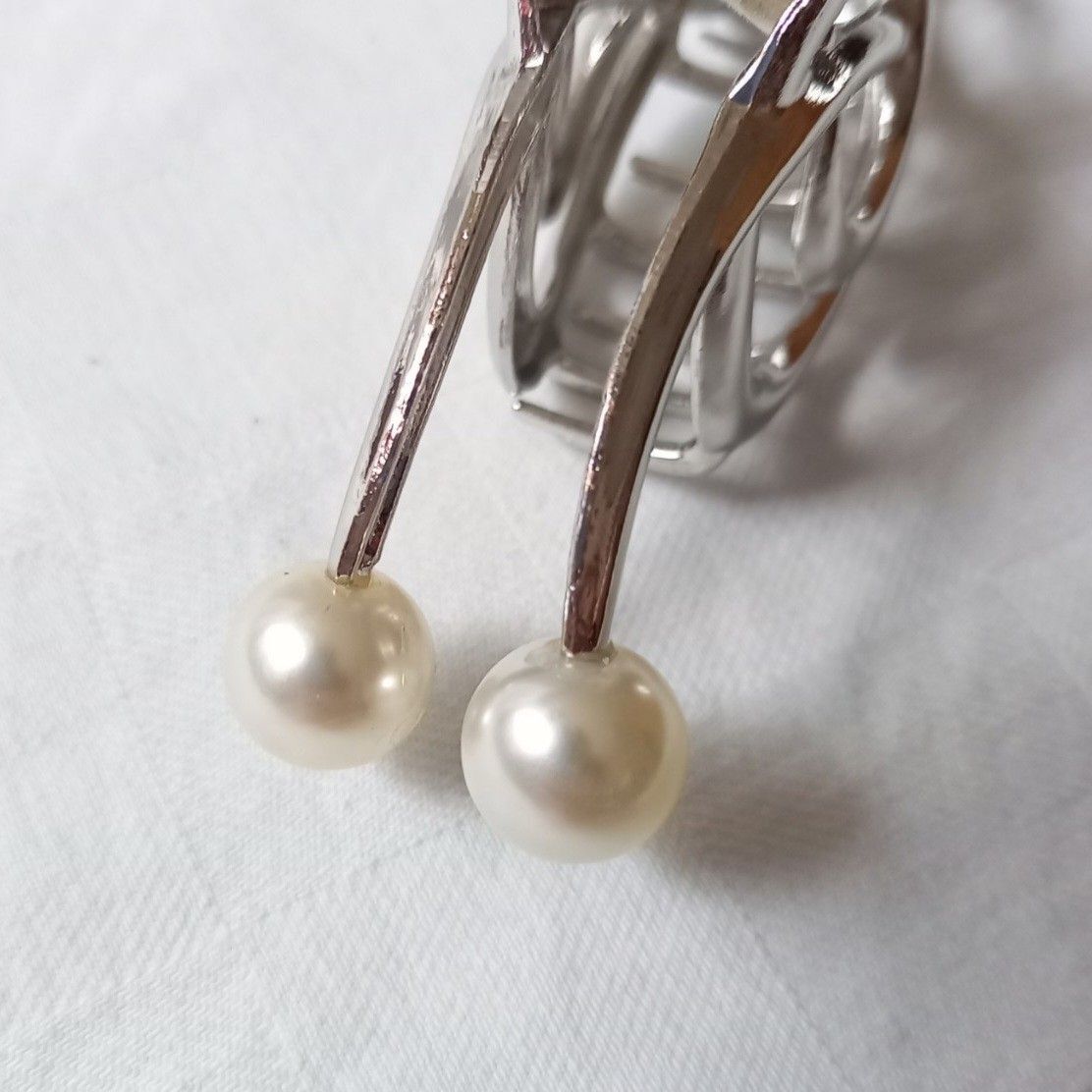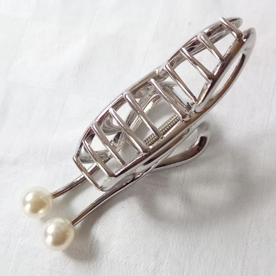 フェイクパールのアクセントが上品さを引き立て、髪につけるだけでエレガントな印象に。