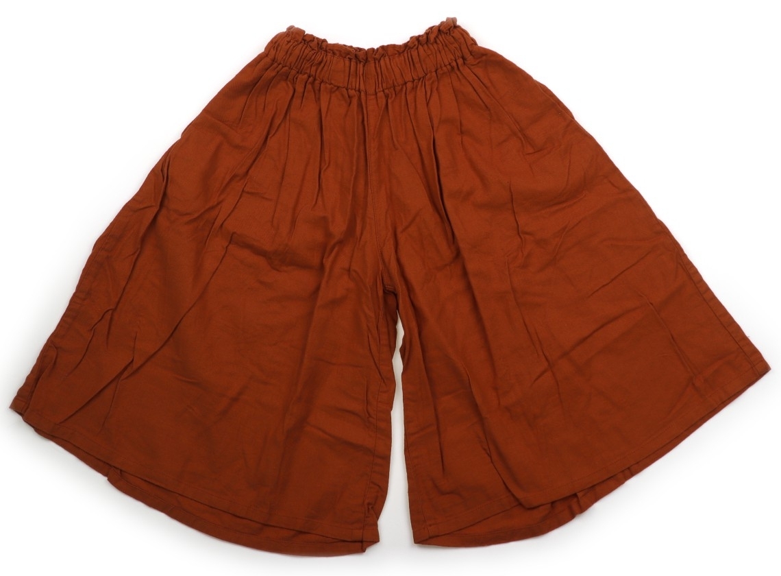 ウエスト総ゴムです。全体に毛羽立ちがあります。綿100%。ガウチョ風デザインです。使用感ありますが、目立つ汚れはなく、まだまだお使いいただけそうです。