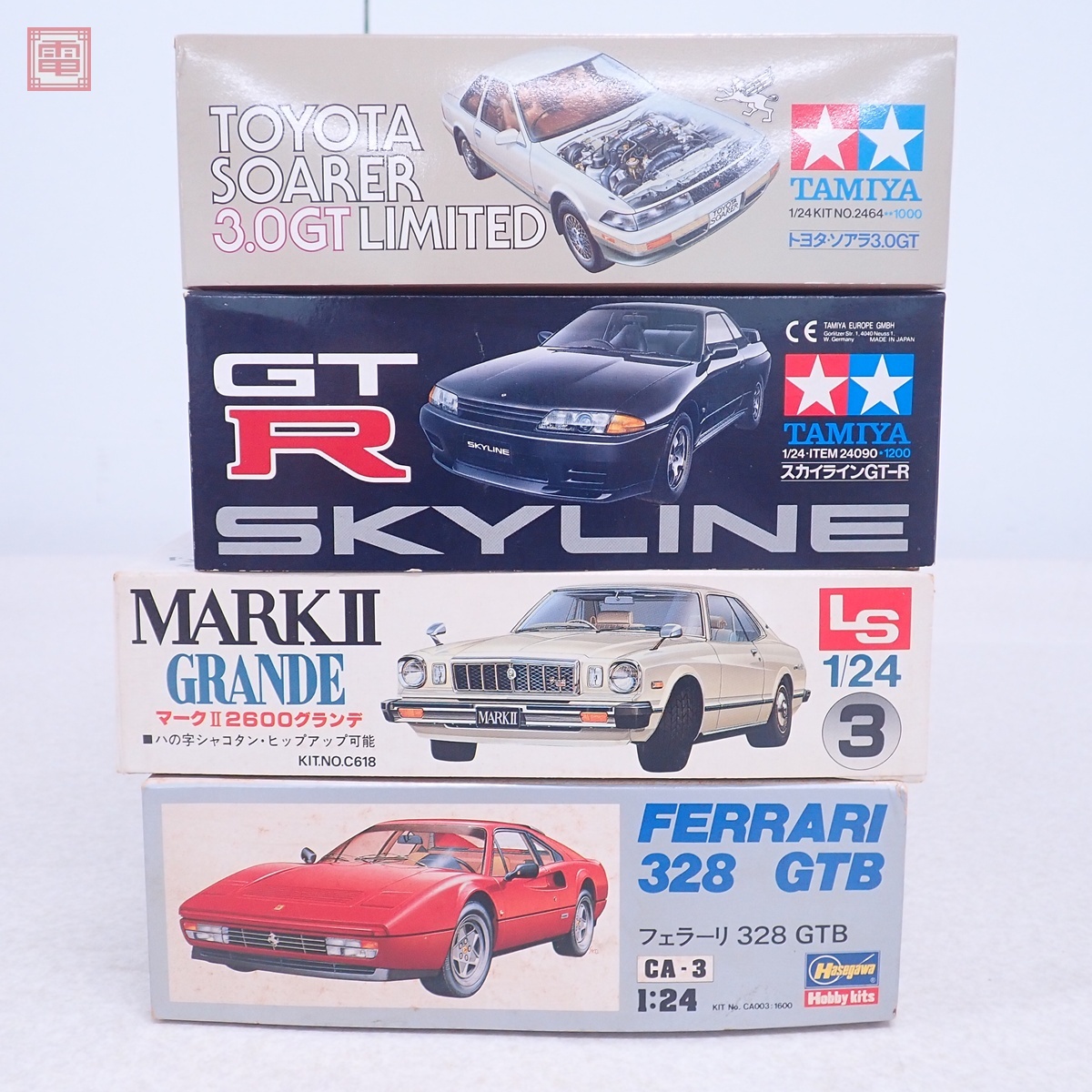 現状品 未組立 タミヤ/ハセガワ 他 1/24 トヨタ ソアラ 3.0GT/マークII 2600 グランデ/フェラーリ 328 GTB 等 まとめて4点セット ■こちらの商品は【現状品】のため、どの様な不具合が生じましても当店では交換・返金・返品等の対応はできません。 ■ご理解ご納得いただける方のみご入札をお願いいたします。 ※ランナー外れ、タバコ臭などのため【現状品】として出品いたします。 ■外箱にスレ、キズ、汚れ、ヤケ、黄ばみ、凹み、タバコ臭、シールの貼付があります。 ■内袋は開封されています。 ■内袋に汚れ、破れがあります。 ■パーツにキズ、汚れ、スレ、黄ばみ、ランナー外れ、タバコ臭、テープの貼付があります。 ■説明書が欠品しているものがあります。 ■説明書に汚れ、黄ばみがあります。 ■デカールに汚れ、黄ばみがあります。 ■タイヤに汚れがあります。 ■パーツ過不足、破損の可能性があります。 ■付属物については簡易検品は行っておりますが詳細なチェックは行っておりませんので、万が一、欠品や余分なものが入っていたとしてもご了承ください。 ■写真のものが全てです。付属物の有無や状態については写真からご判断ください。 ■付属物については細かいチェックはしておりませんので、万が一、欠品があったり余計な物が入っていたとしてもご了承ください。 ■商品到着後、当店の保証期間中は、商品及び箱や取説、付属品などを1つでも廃棄や破損をしないようにお願い致します。廃棄や破損をした場合、商品に問題があった場合でも対応や返金などの対処ができなくなります。 ■商品によりますが、発売されてから10年以上経過している中古品である事をご理解頂いた上でご入札をお願い致します。なお、新品や美品、また特記事項がある場合は別途明記します。 | |||