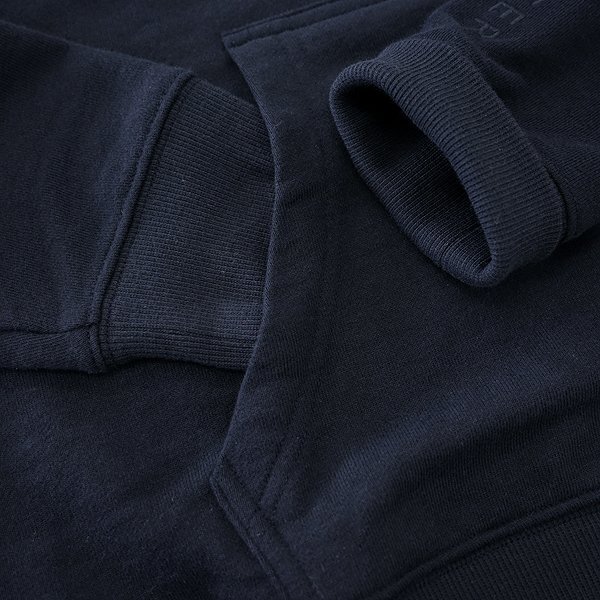 ボディ部分はシンプルに仕上げ、左袖にはブランドネームとフラッグロゴの刺繍を加えたフルジップパーカーです。 ゆったりめシルエットに加えてソフトな裏毛スウェットを使用しているので、リラックスできる着心地に仕上がっています。 ワントップはもちろん、コートやジャケットのインナーとしても使いやすいアイテムです。 |