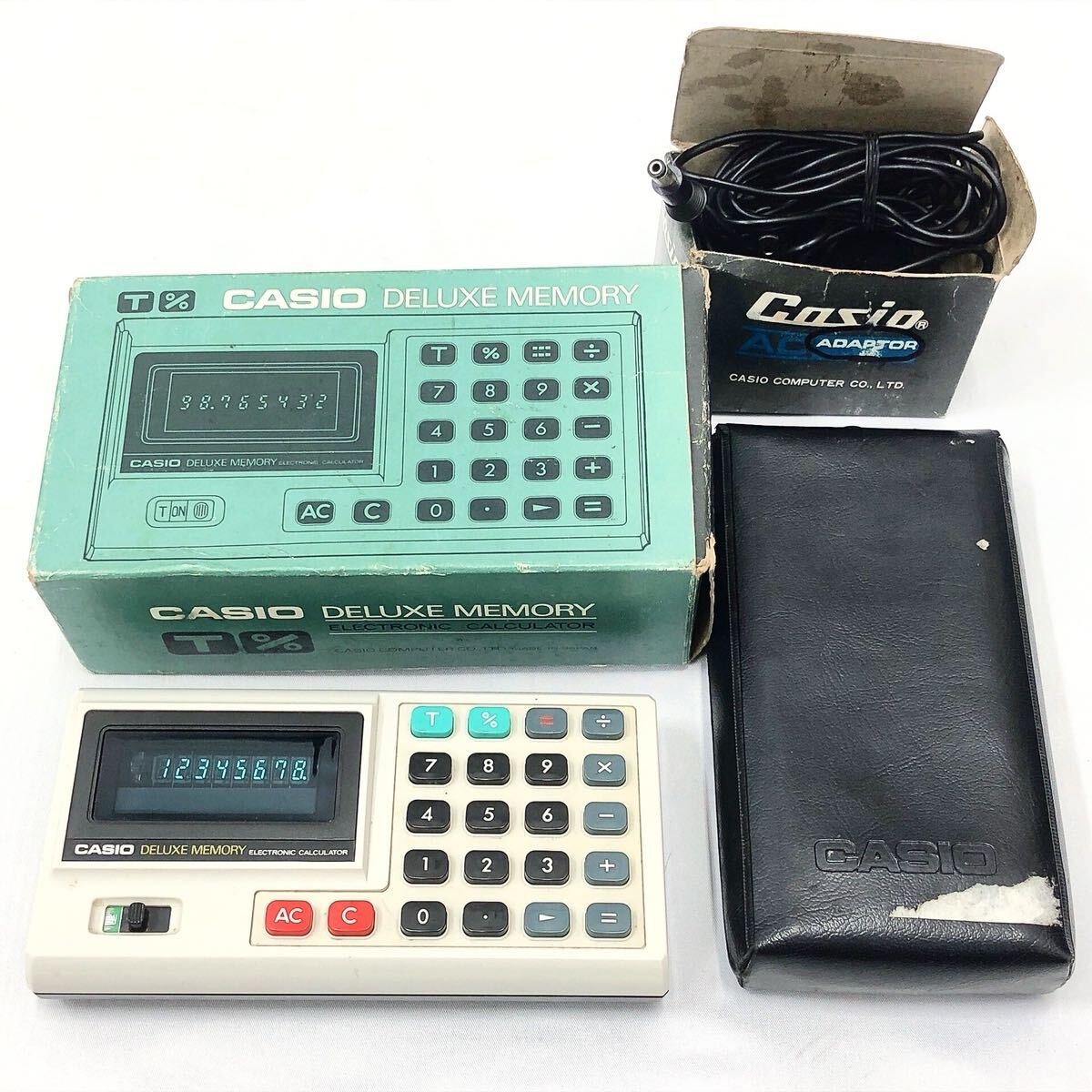 動作品 CASIO カシオ DELUXE MEMORY ELECTRONIC CALCULATOR AD-4145 電卓 計算機 ケーブル 箱付き