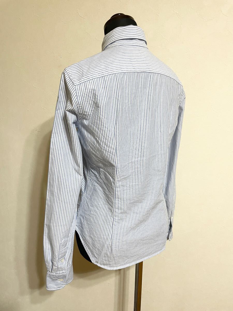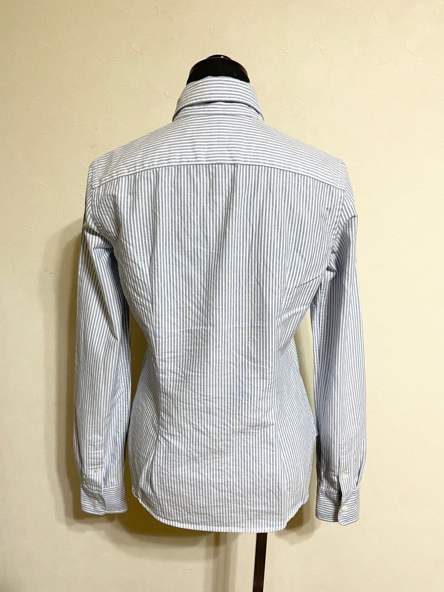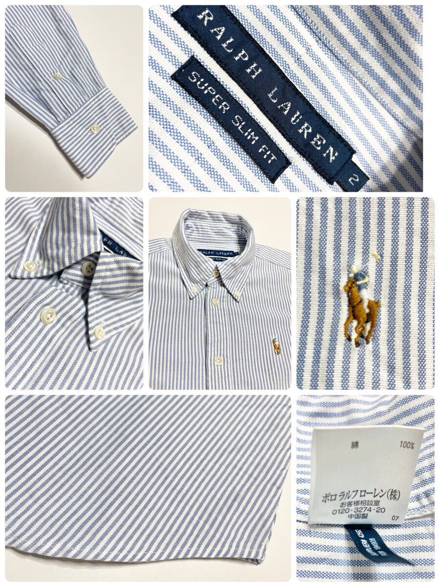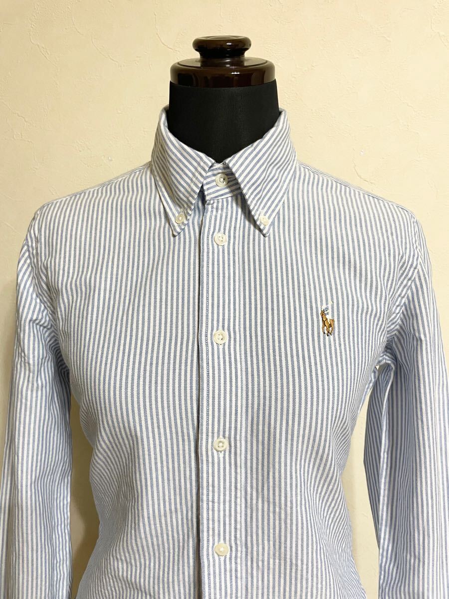 【品名】【美品】 ポロ ラルフローレン レディース ボタンダウン オックスフォードシャツ スーパースリムフィット サイズ2 長袖 ストライプ 白水色