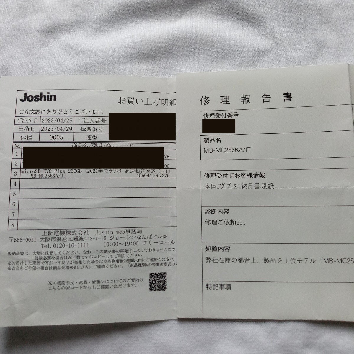 元々Joshinにて購入しましたので、納品書にも住所氏名の記載がありません。保証用の納品書、修理(交換)証明書もお付けしますが、実際に対応してもらえるかどうかは分かりません。