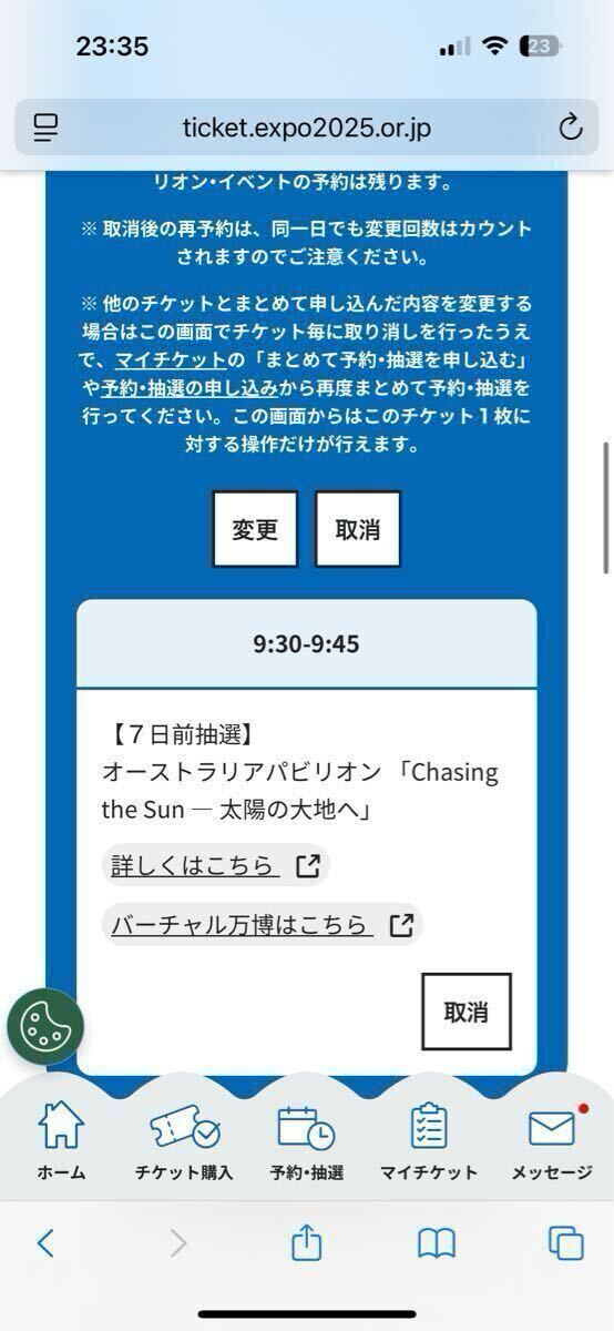 7日前抽選は終了しており、2枚とも朝のオーストラリアパビリオンを予約済です。