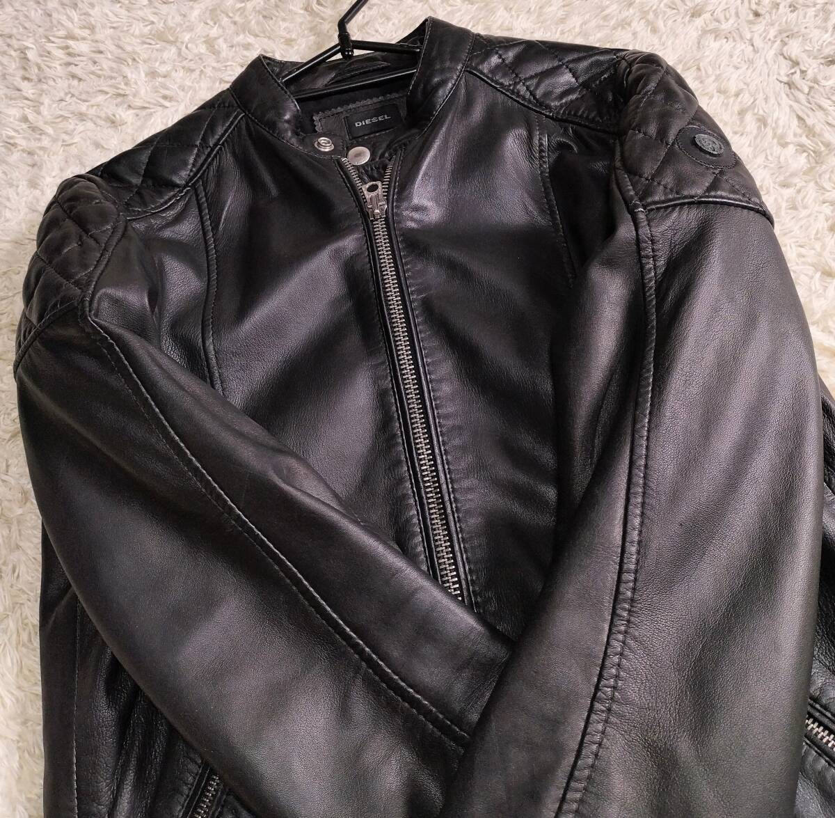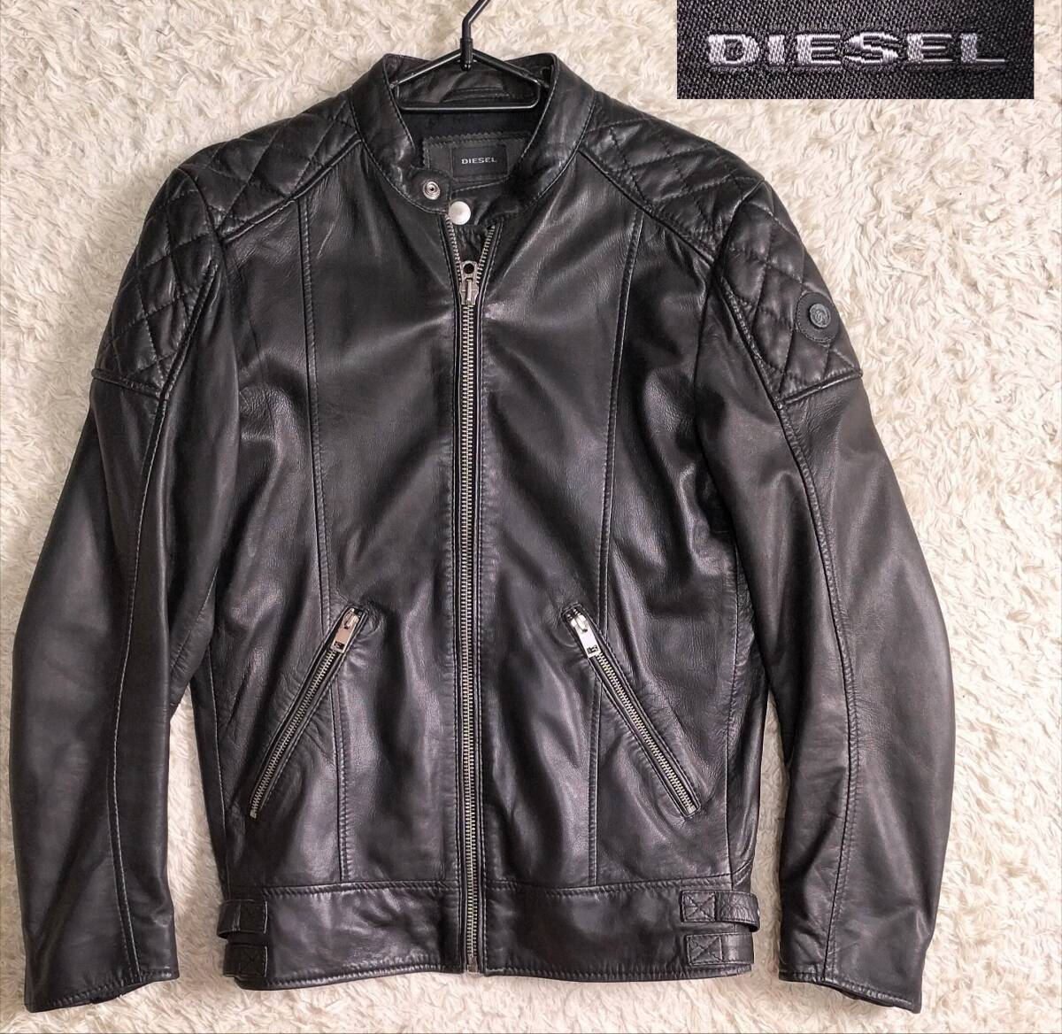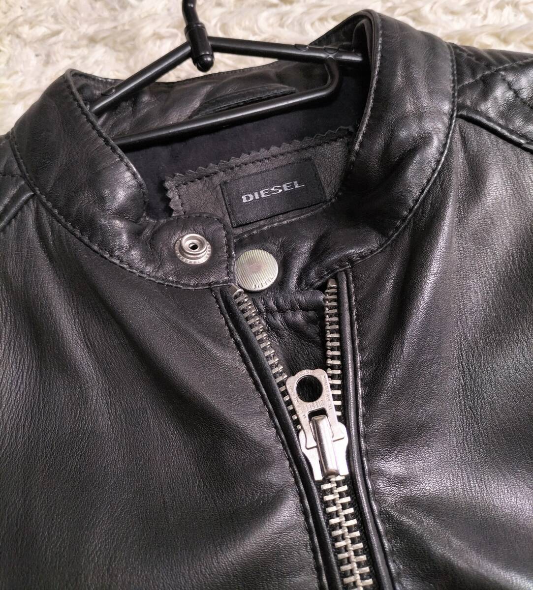 【羊革★】Sサイズ DIESEL シープレザー シングル ライダースジャケット 黒●ディーゼル (9ハ)